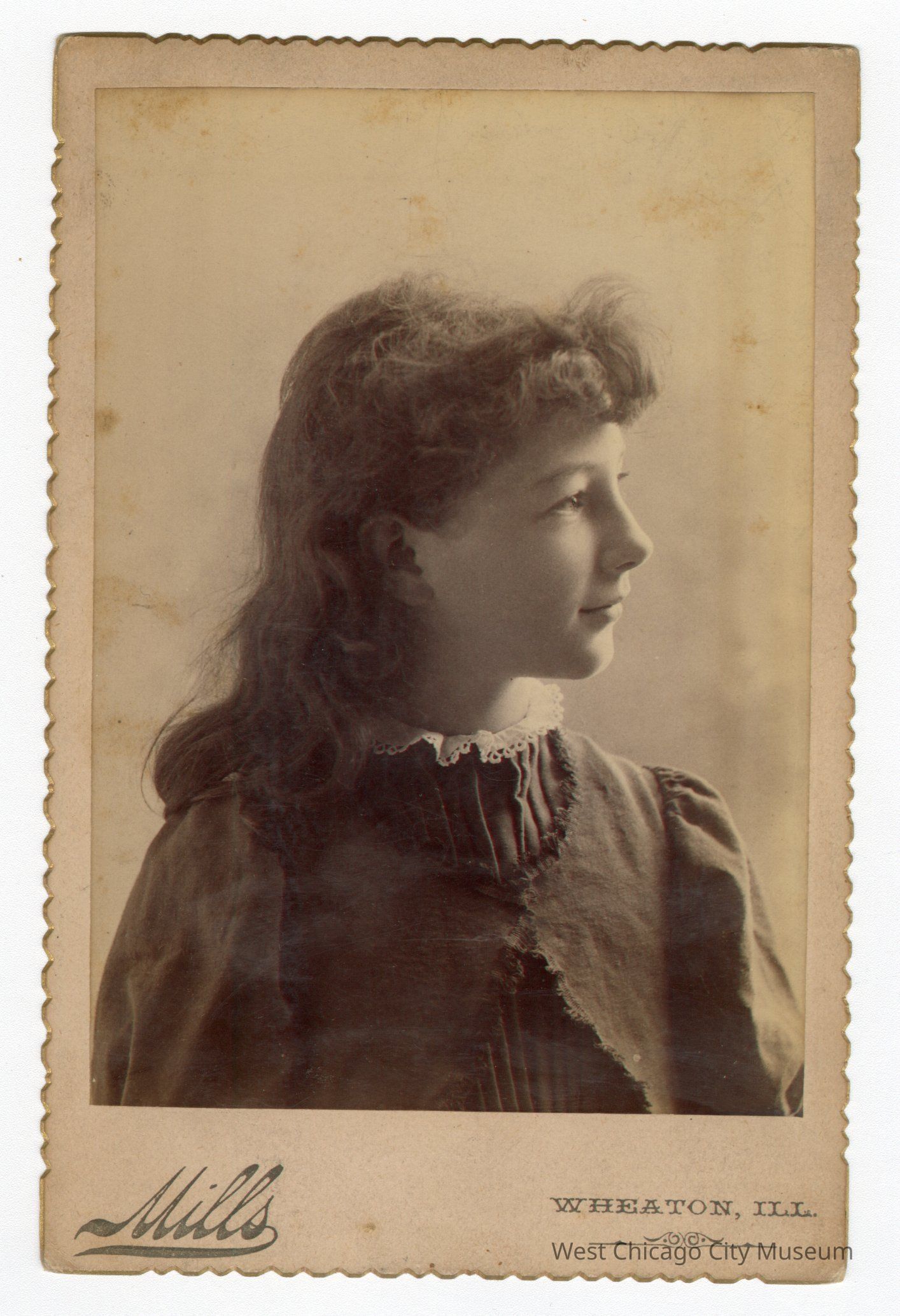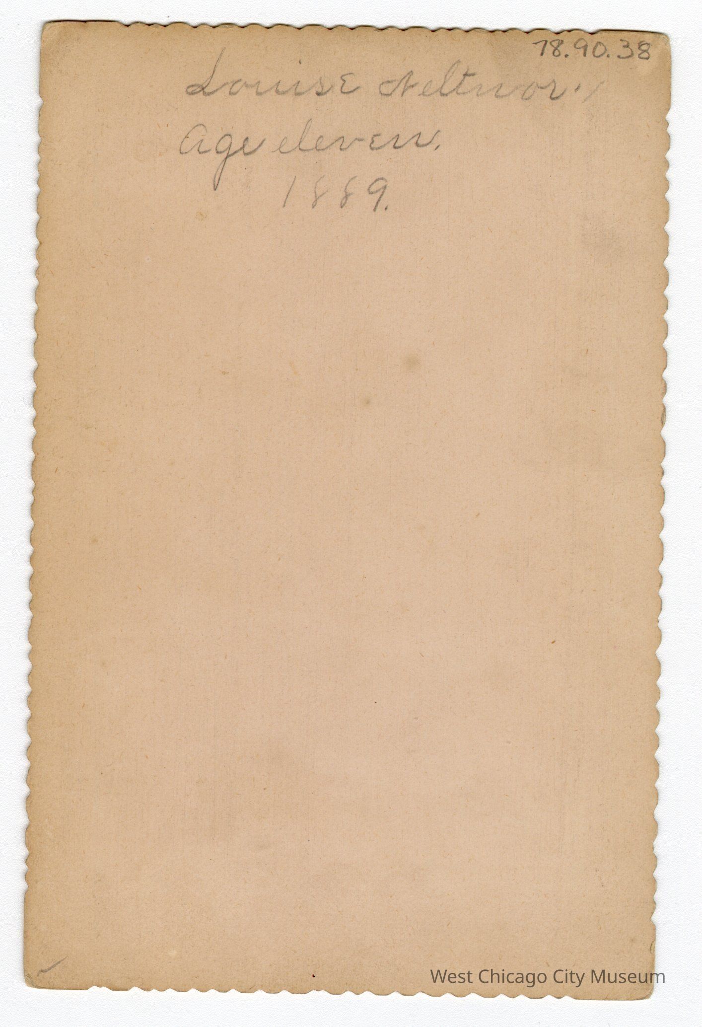 Photo, b&w, Caroline Louise Neltnor, 1889, taken at Mills Studio, Wheaton. Written on reverse in pencil: Louise Neltnor, Age eleven, 1889. 4 1/4"w x 6 1/2"hPhotograph Details
