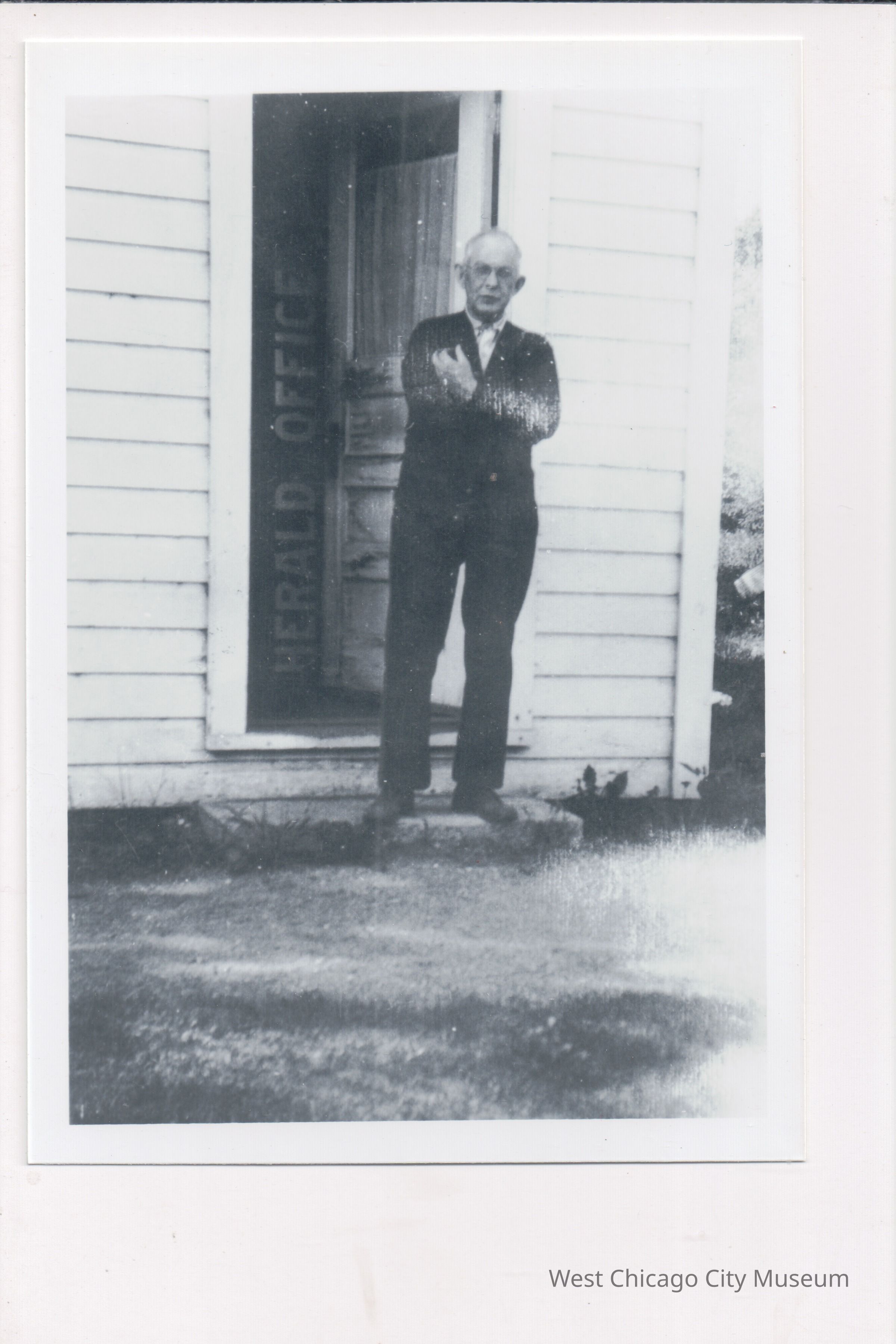 Photograph of Mr. Stephen Ellsworth Wright standing at the stoop of a buildingPhotograph Details