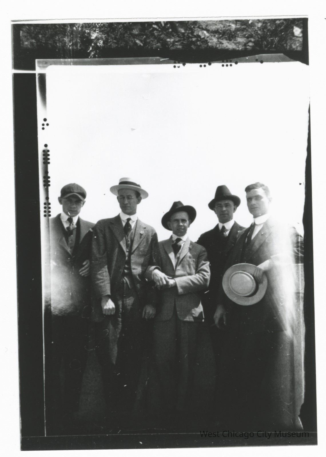 B&W photo, five men in suits, Elmer Hayward is at right