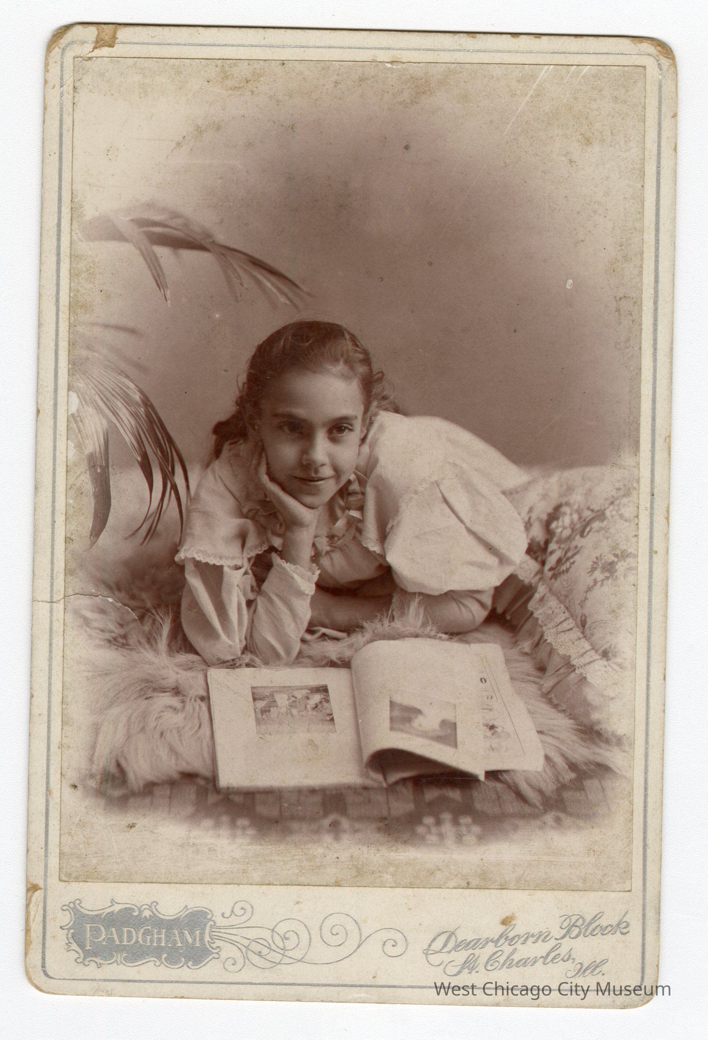Photo, b&w, Helen Maud Hills, taken at Padgham Studio, St. Charles, n.d. c1893 4 1/4" w x 6 1/2" hPhotograph Details