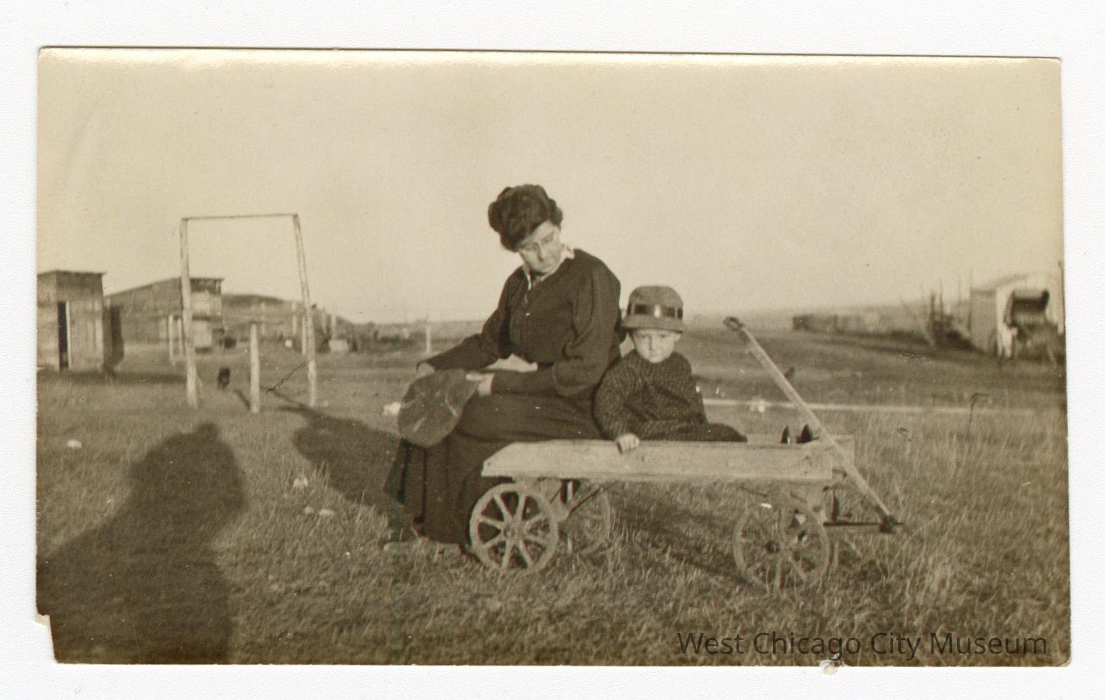 Photo of Irma Anderson sitting with her kid in a wagon