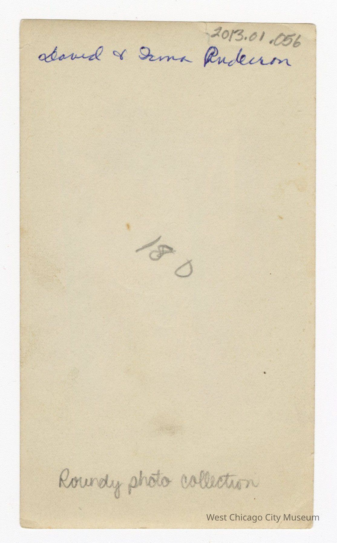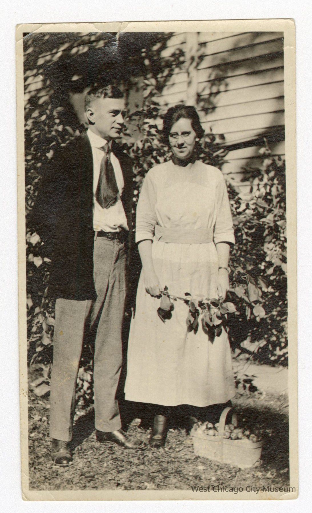 Photo of Irma and David Anderson with a branch in hand and a full basket at their feetPhotograph Details