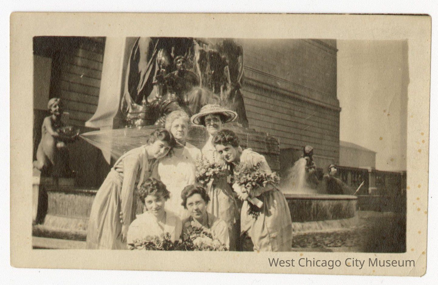 Photo of Irma Roundy and 5 other women in front of the Art institute fountainPhotograph Details