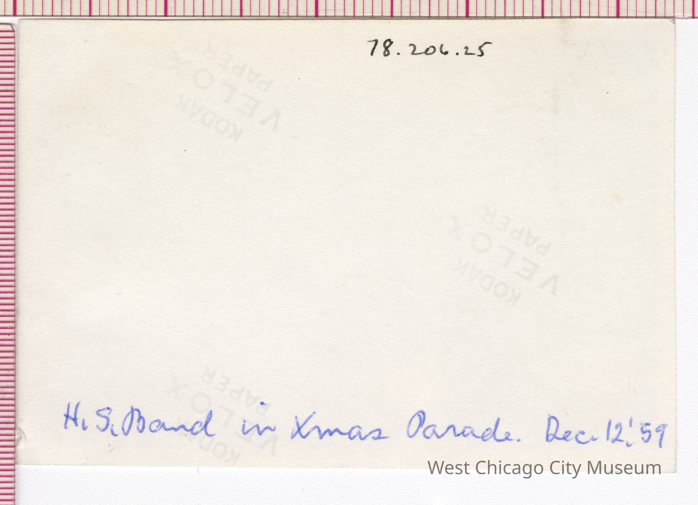 Photograph of "High School Band" in December 12, 1959 Christmas ParadePhotograph Details