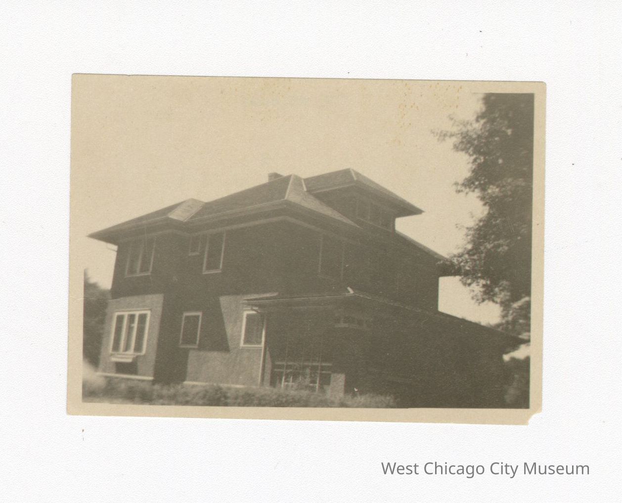Photo, black and white of James Carr’s home on Fulton Street. The house is two stories tall and the photo was taken from the front left side of the house. There are no people in the photo. Back of photo reads “James Carr residence on Fulton StreetPhotograph Details