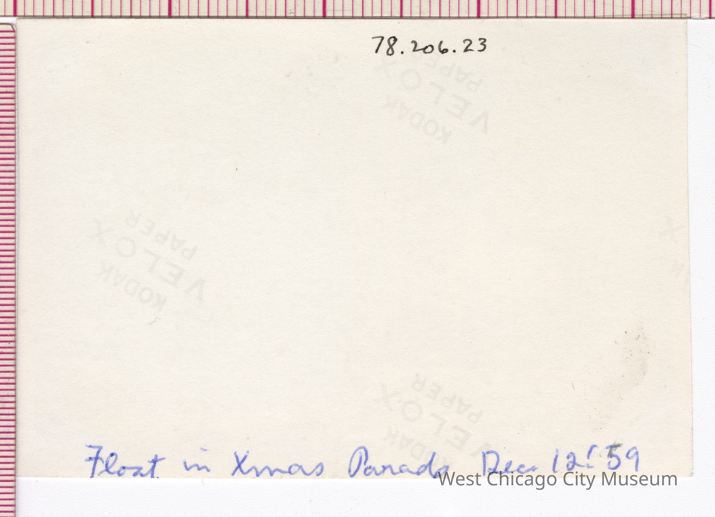 Photograph of a float in the December 12, 1959 Christmas ParadePhotograph Details