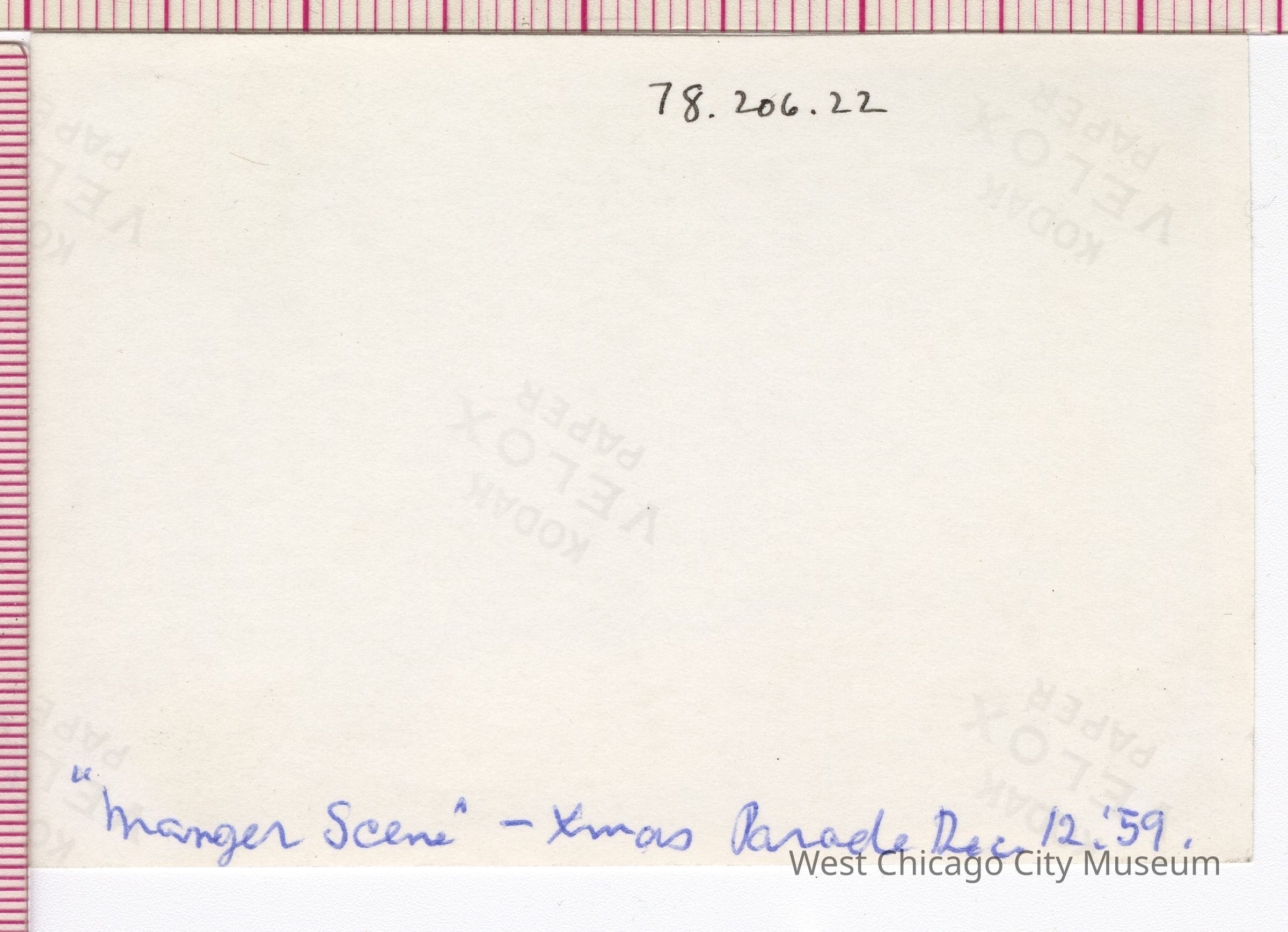 Photograph of "Manger Scene" in December 12, 1959 Christmas ParadePhotograph Details