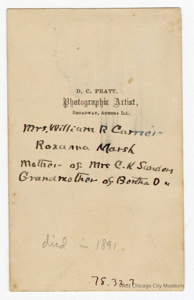 2 1/2 x 4 photograph of Mrs. William R. Currier (Roxanna Marsh)Photograph Details