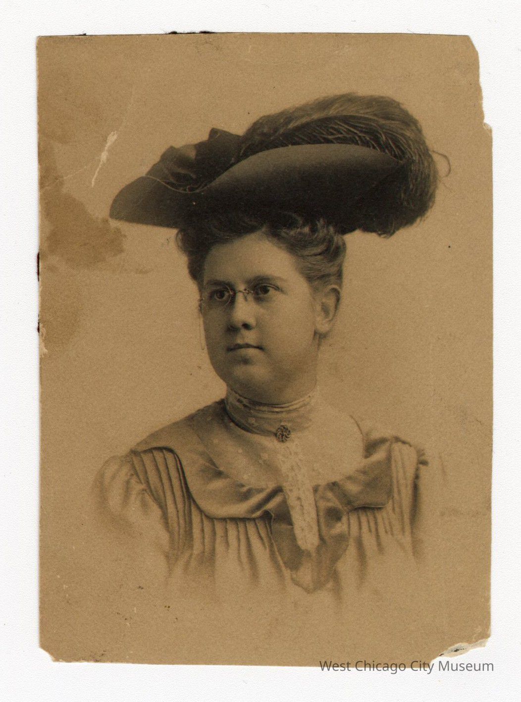 Photograph of Irma May Roundy wearing a feathery hat