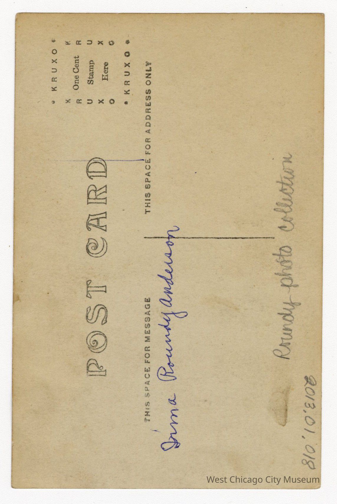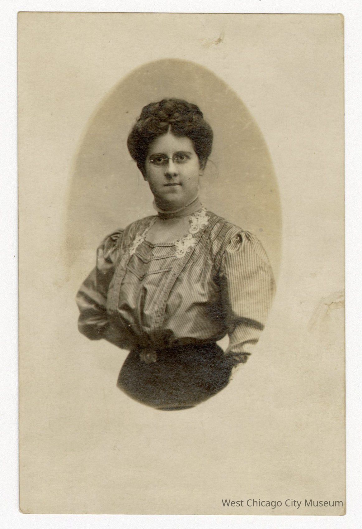 Photograph of Irma Roundy with an oval feathering, postcard imagePhotograph Details