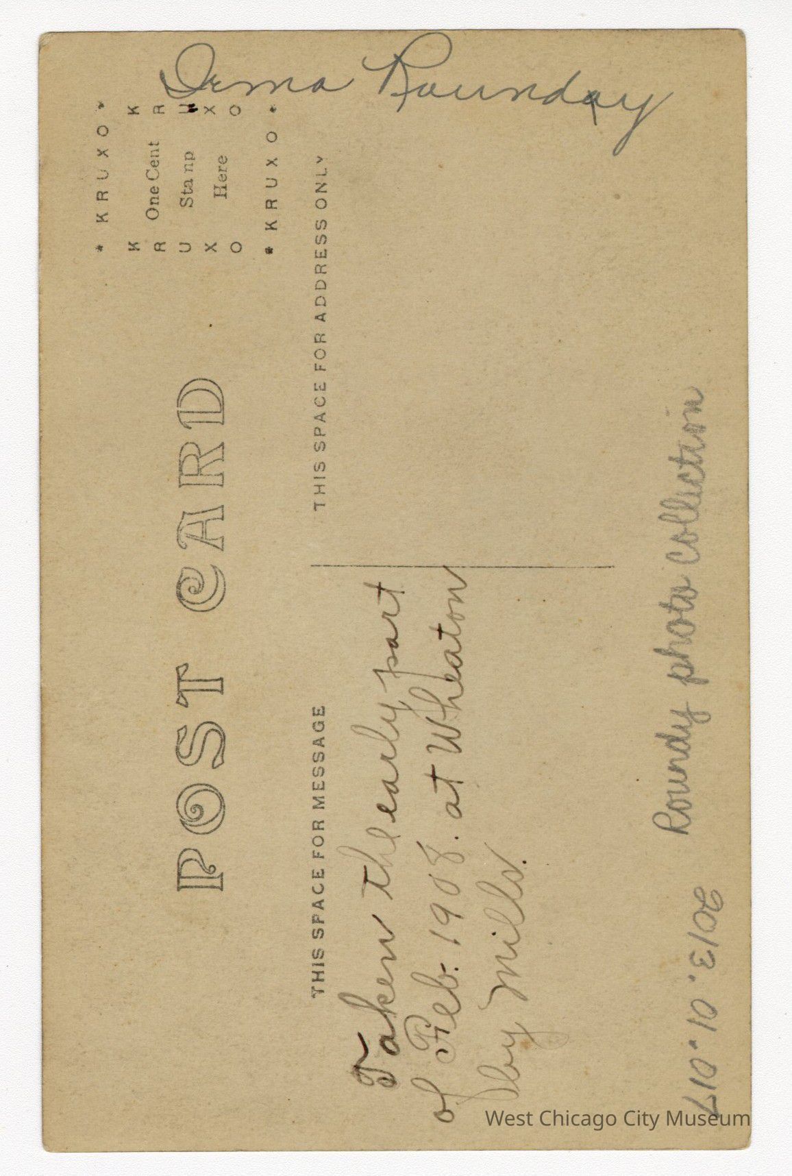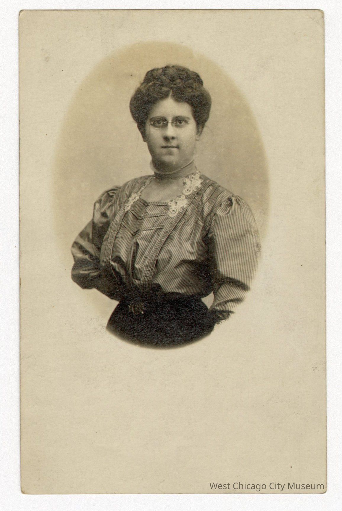 Photograph of Irma Roundy with an oval feathering, postcard imagePhotograph Details