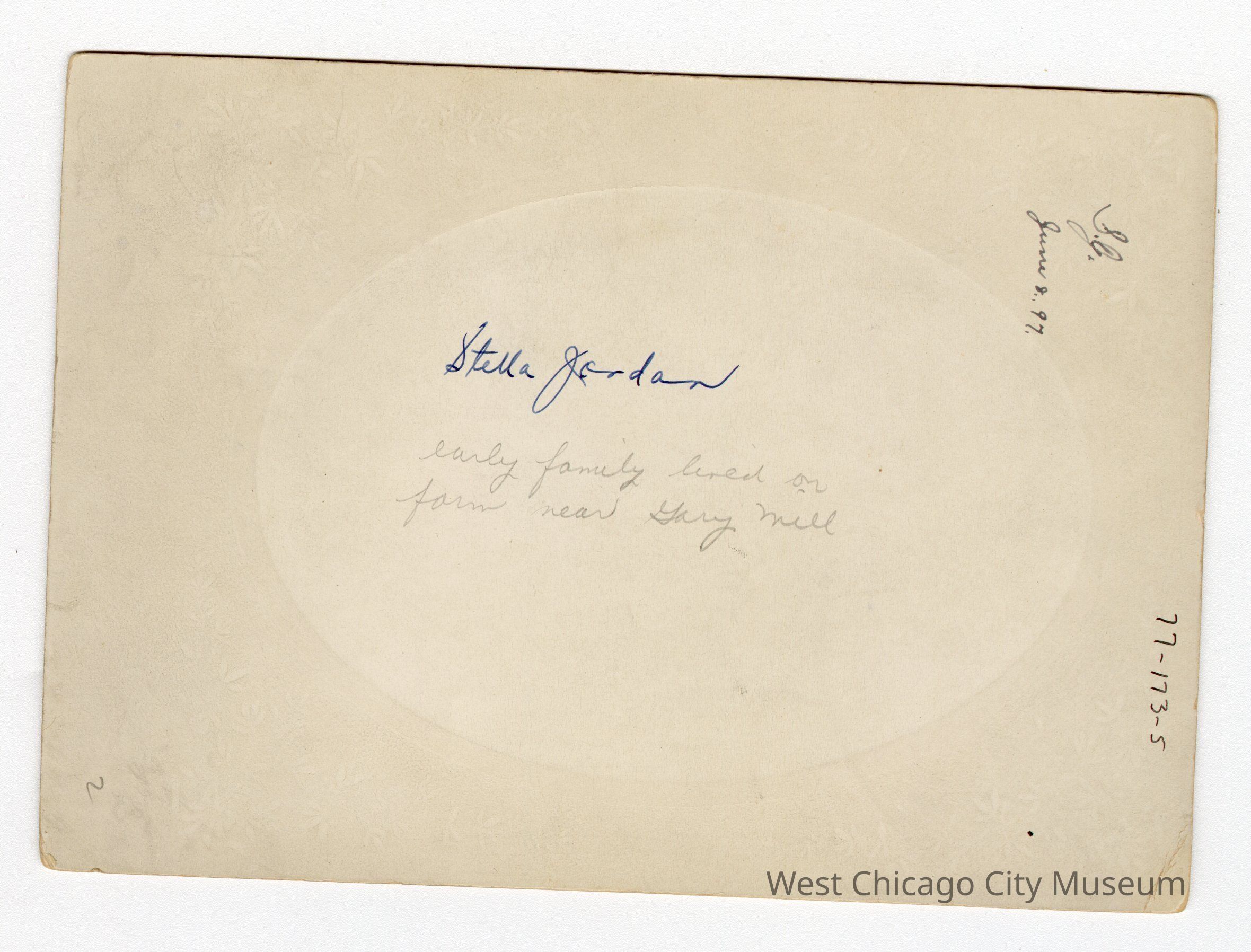 3 1/2 x 5 1/2 oval photograph of Stella Jordan, possibly taken in 1897 (Jordan farm near 59 and Joliet)