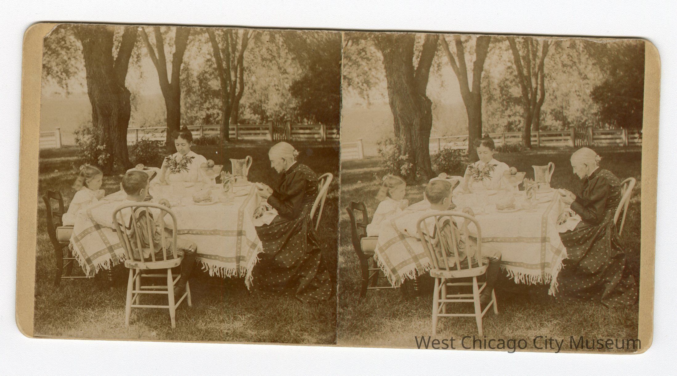 stereopticon photo of 2 Ladies and girl and boy (Isherwood-Paul, Helen, Mother and grandmother)Photograph Details
