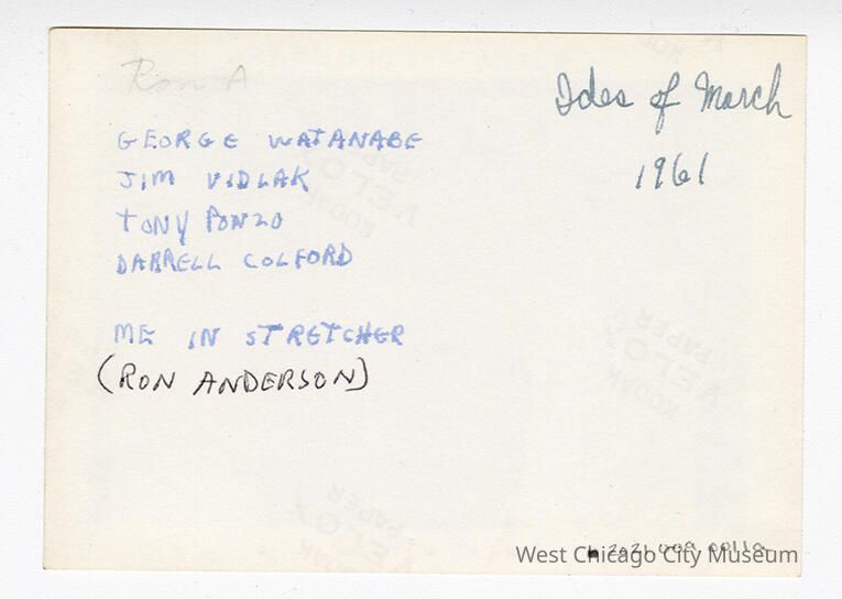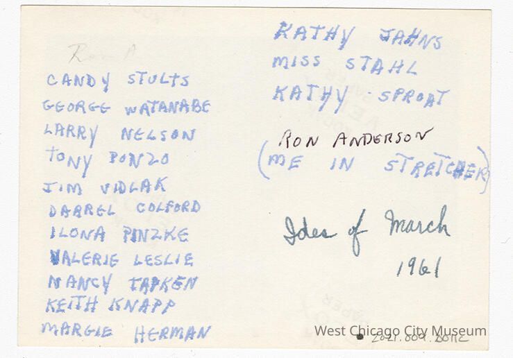 Found in envelope (not accessioned) that has note "Latin Students from Naperville w/ WC High School" and "Ronald Anderson"