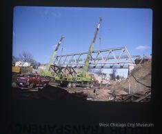 In 2021 the street is called Wilson Avenue (according to Google), right off Main Street. The new bridge was built late 1986, and redirected the street. October 1986 a photo in the collection shows both bridges standing at the same time. July '87 is when the Slides were made.