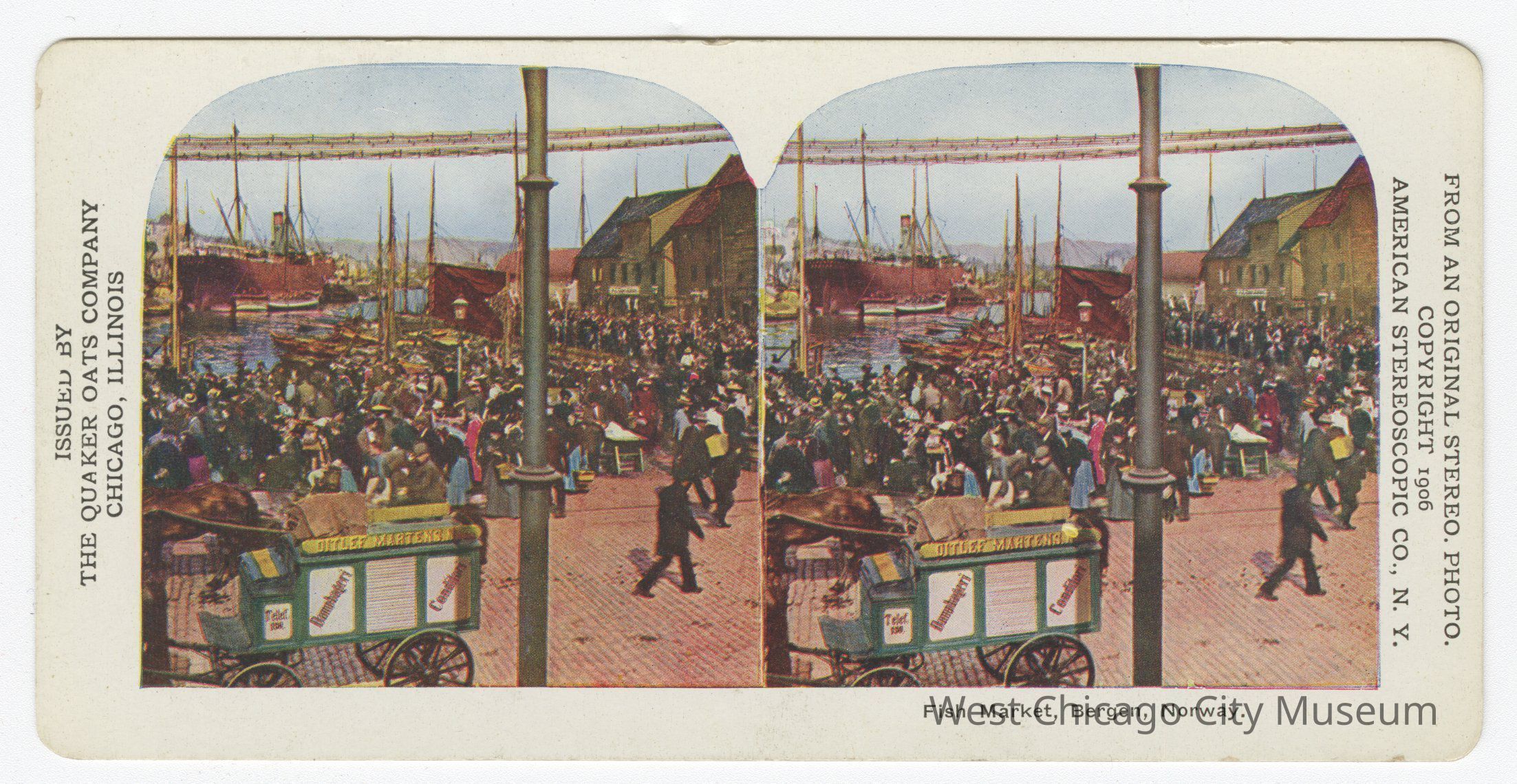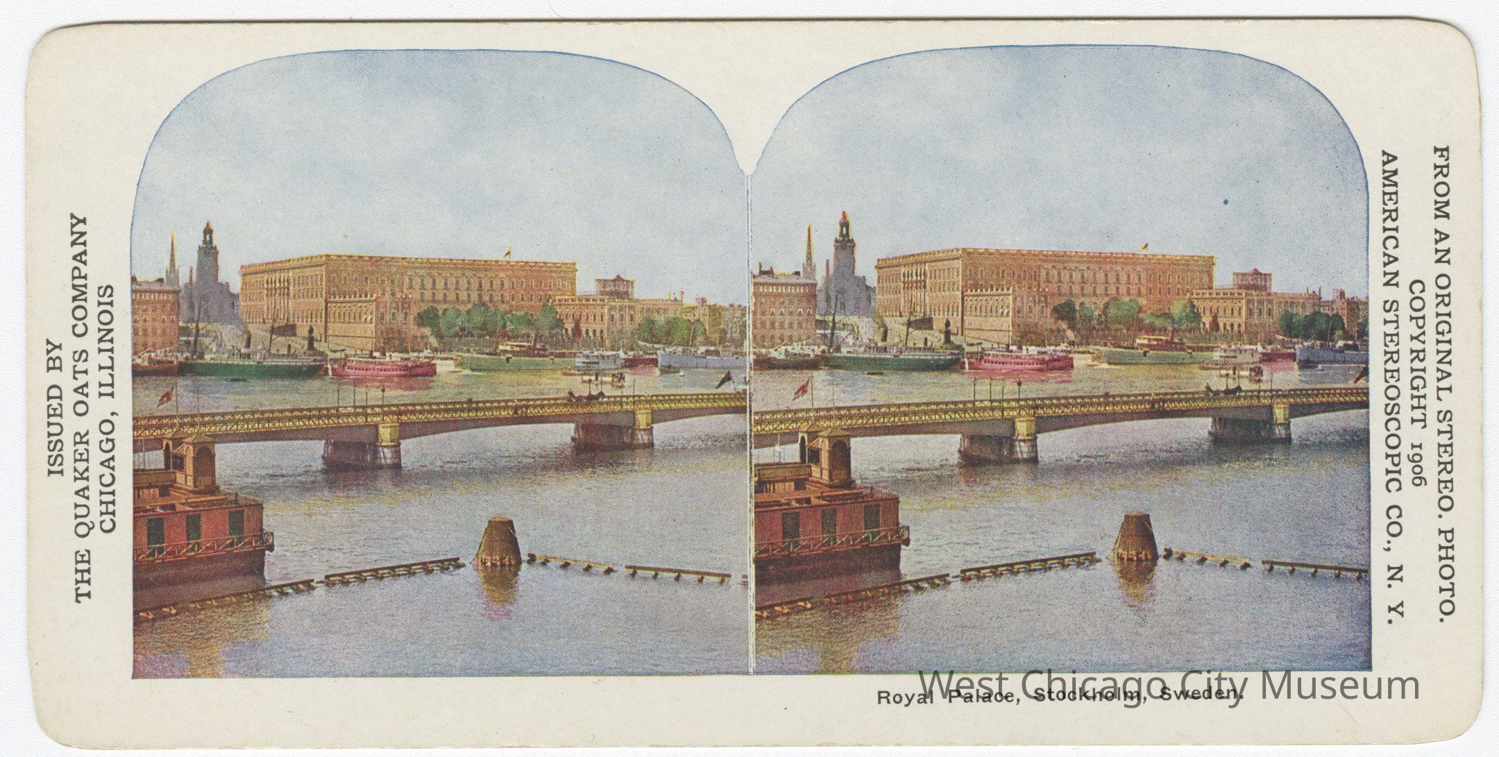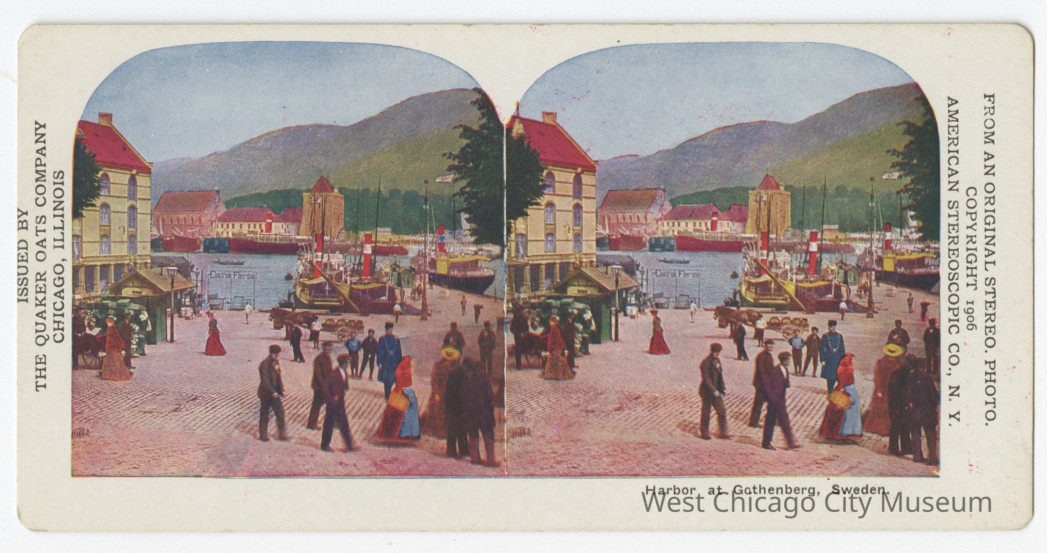 Stereoscope cards (Stereographs), issued by the Quaker Oats Company, Chicago Illinois, produced by the American Stereoscopic Company, Copyright 1906. Cards are grouped by location. They show scenes of live and the landscape