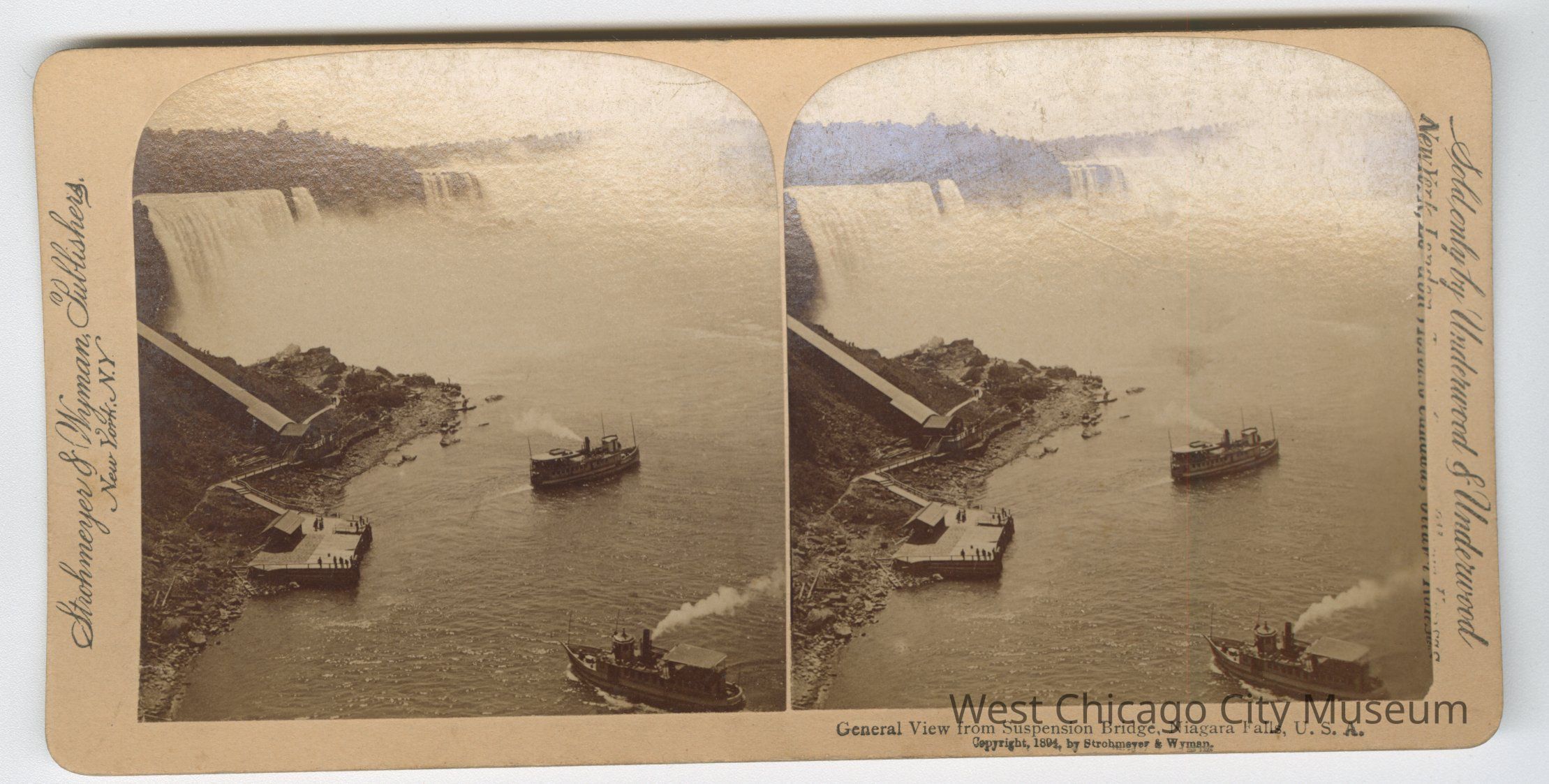 Stereoscope cards (Stereographs), Black and white, published by Strohmeyer & Wyman, and sold by Underwood & Underwood, dated from 1894-1899. Cards are grouped by location / topic. They show picturesque scenes around the world