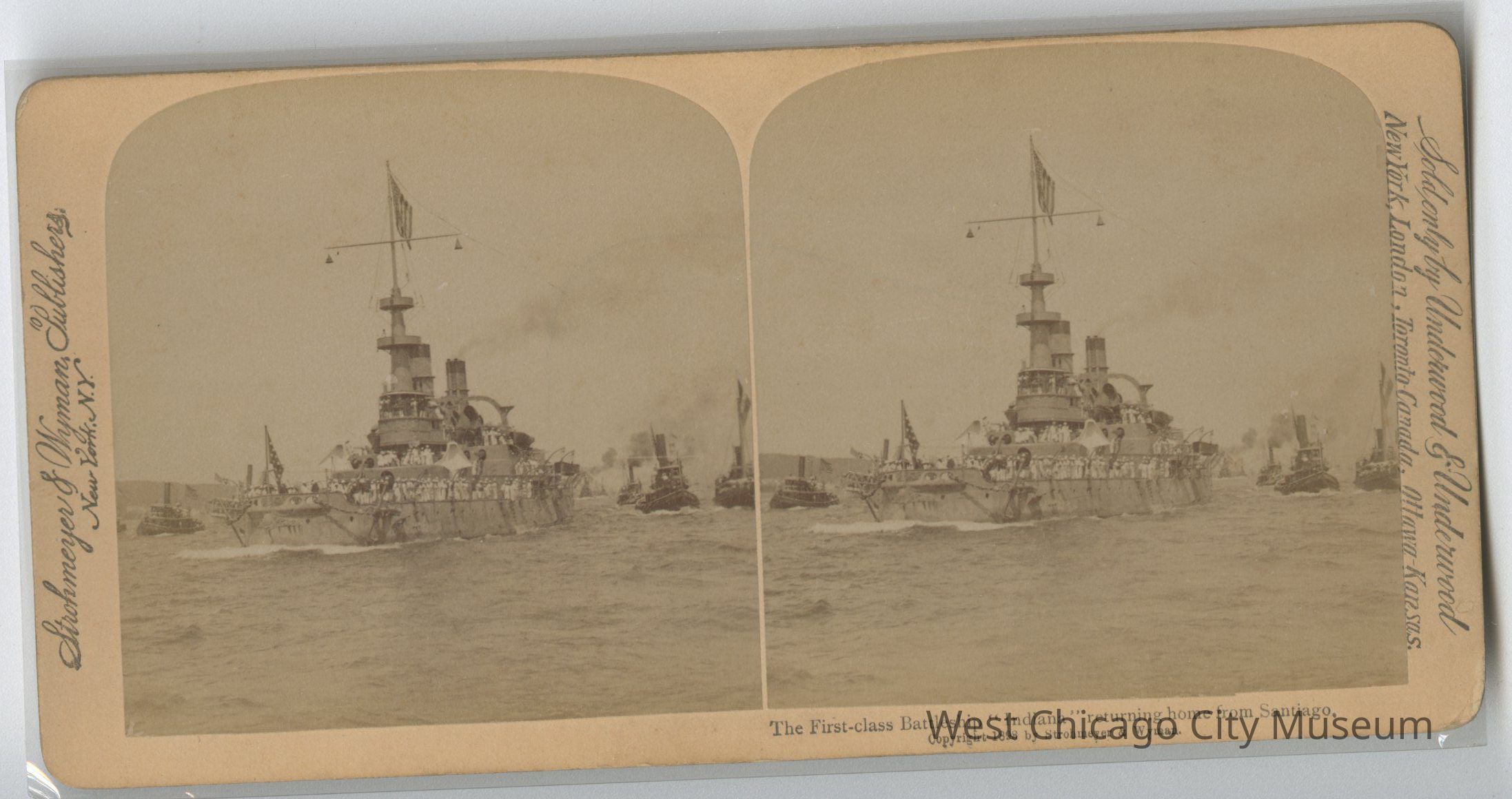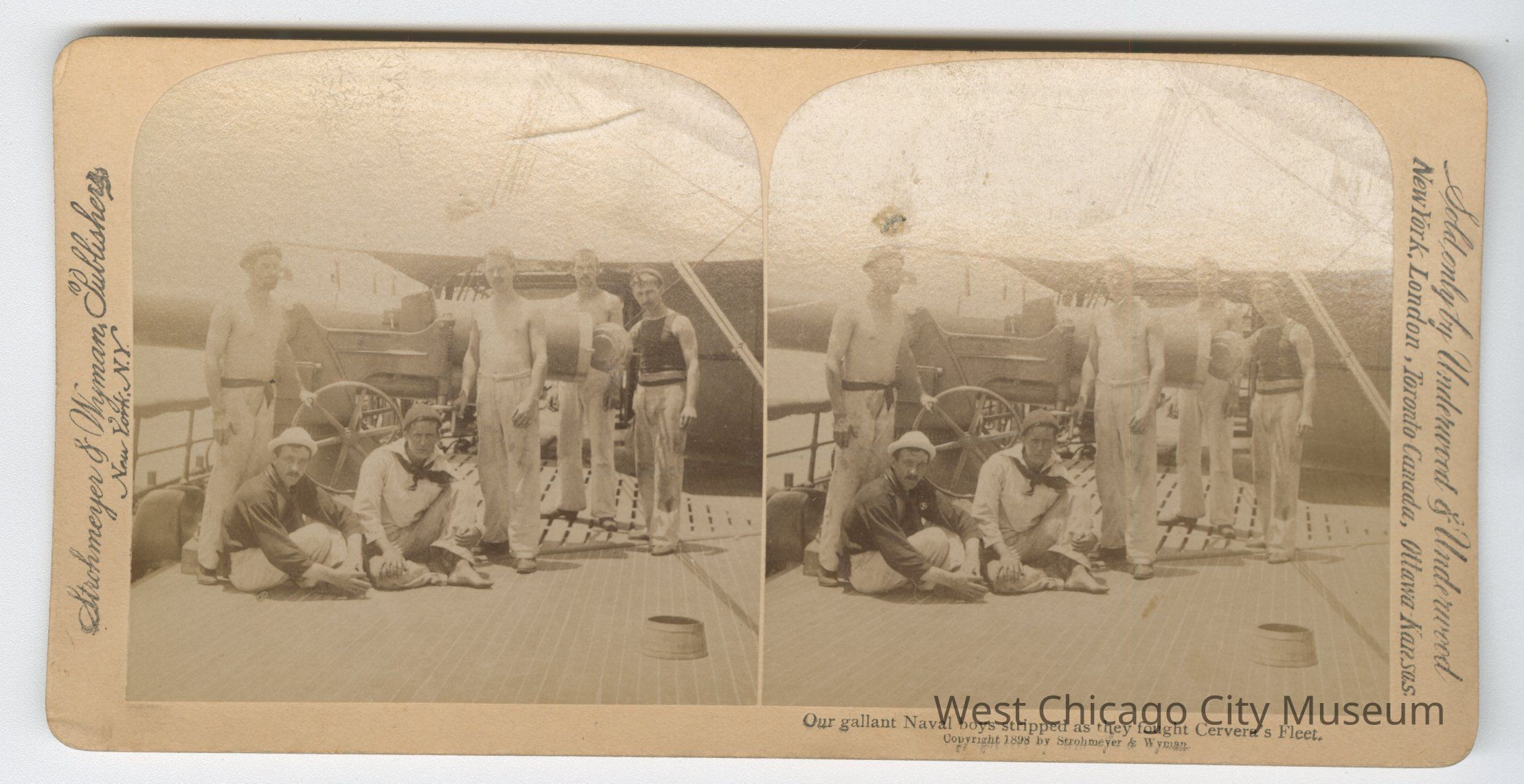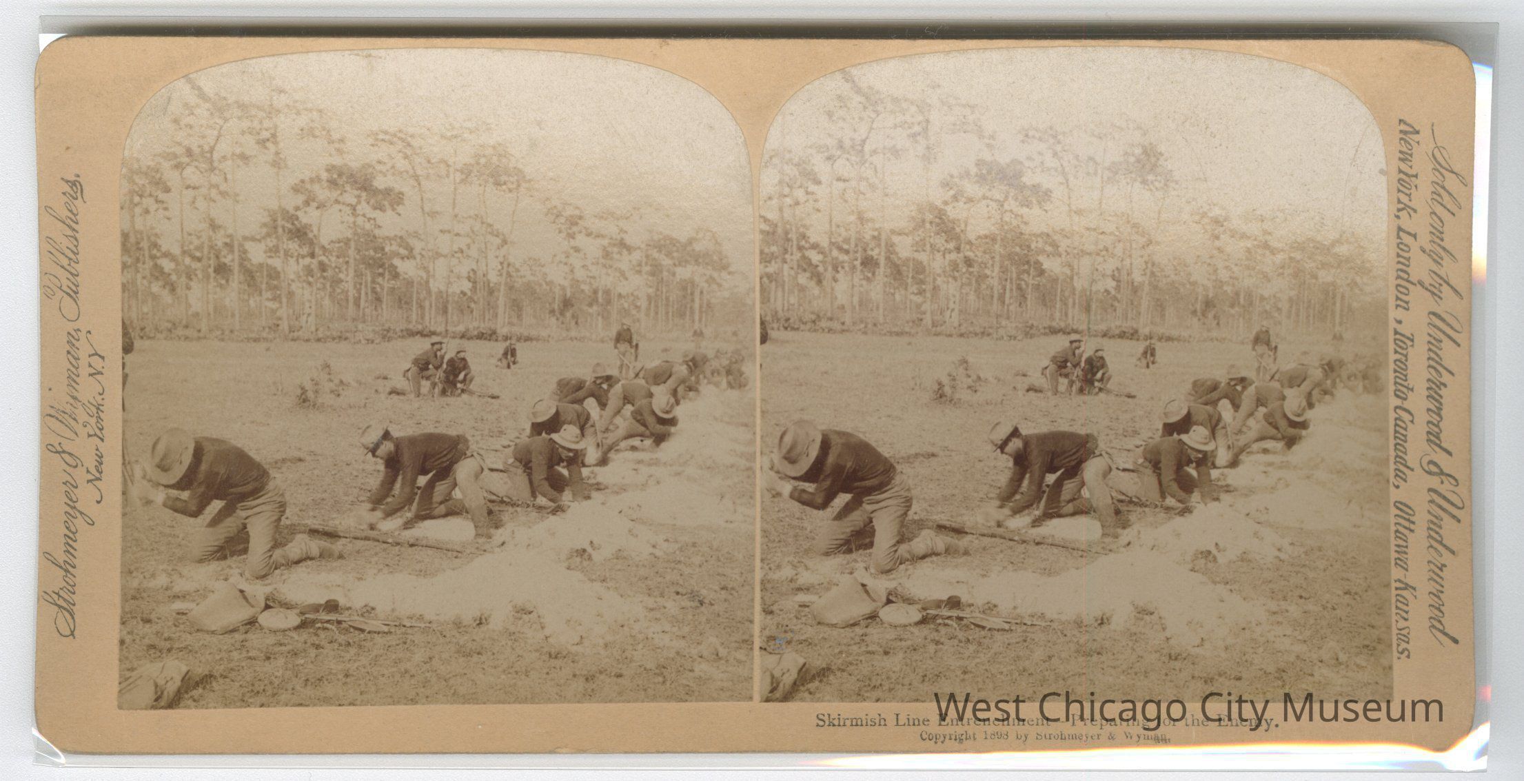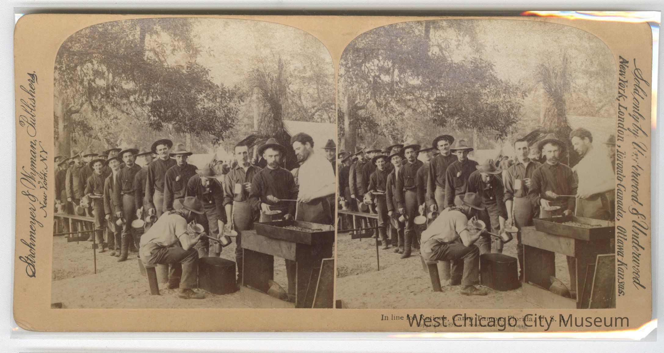 Stereoscope cards (Stereographs), Black and white, published by Strohmeyer & Wyman, and sold by Underwood & Underwood, dated from 1898 - 1899. Cards are grouped by location / topic. They show military scenes from the Spanish American War.