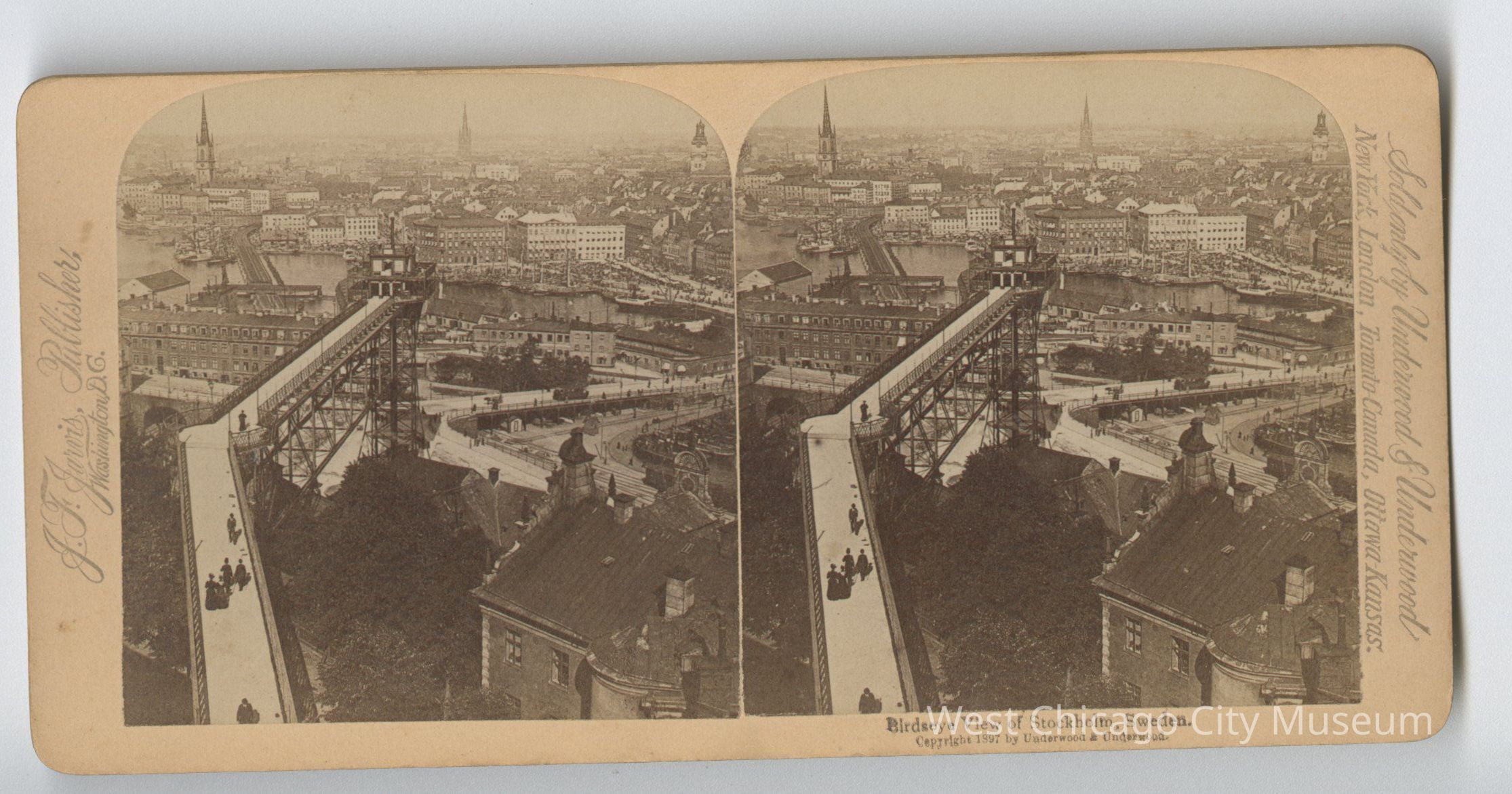 Stereoscope cards (Stereographs), Black and white, produced by J. F. Jarvis, and sold by Underwood & Underwood, dated from 1889 - 1898 Cards are grouped by location / topic. They show picturesque scenes and important events