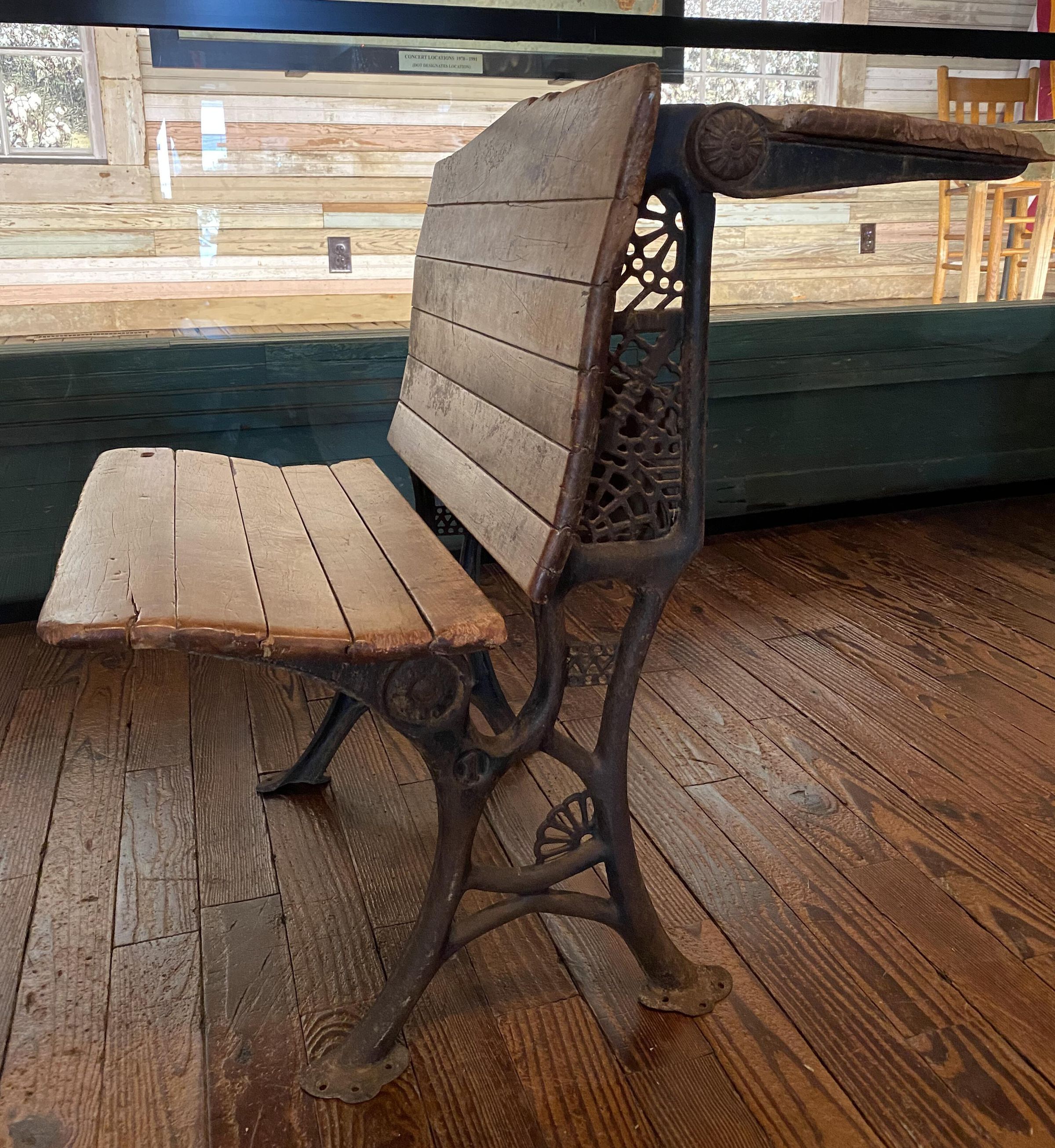 This is a mass-produced “patent desk” made of wood and cast iron.