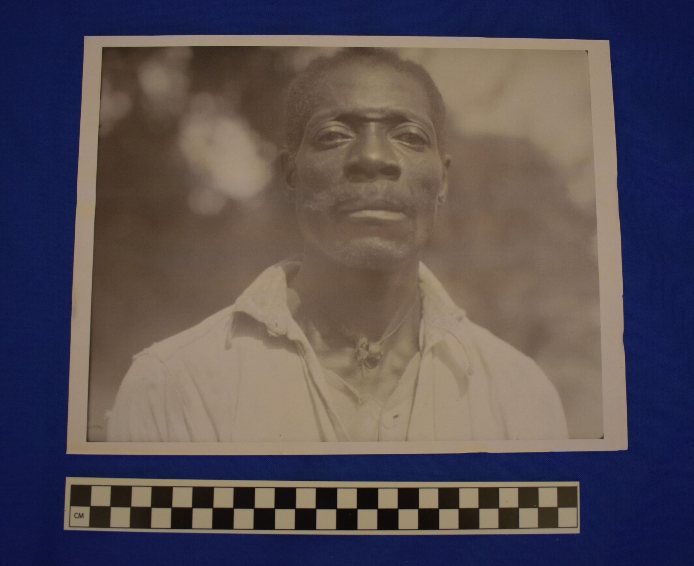 Newbell Niles Puckett, who was a Mississippian folklorist, went through the Mississippi Delta conducting research and documenting African American folklore practices in the 1920s and ‘30s. This photographic copy provides an example of early hoodoo practitioners and users. The healer in the photo is wearing nutmeg on thread around his neck, which he believed would provide him with good health and protection.Made/Created
