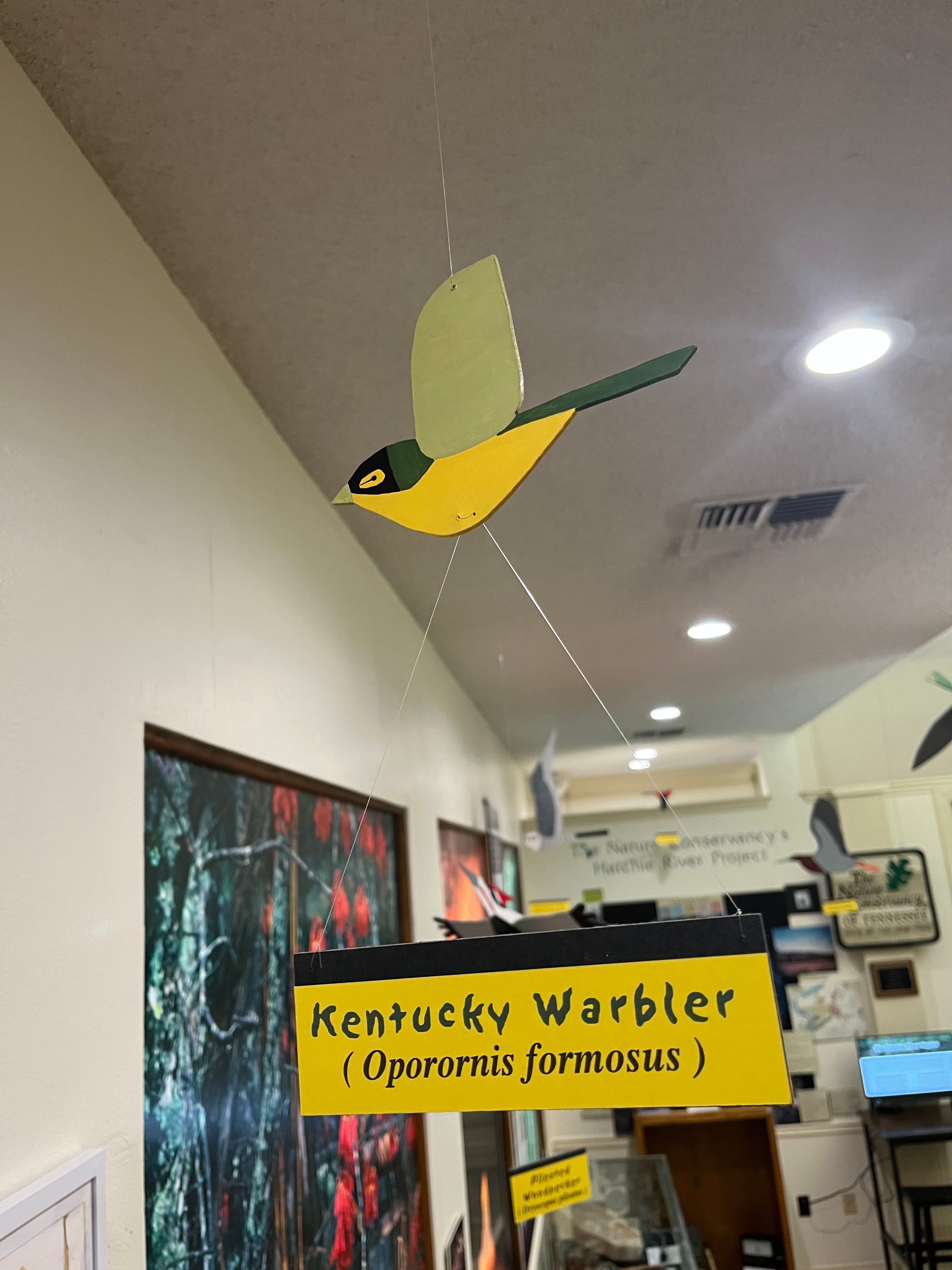 Model of a Kentucky Warbler (Oporornis formosus) created by Rick Light of Crockett County, TN.