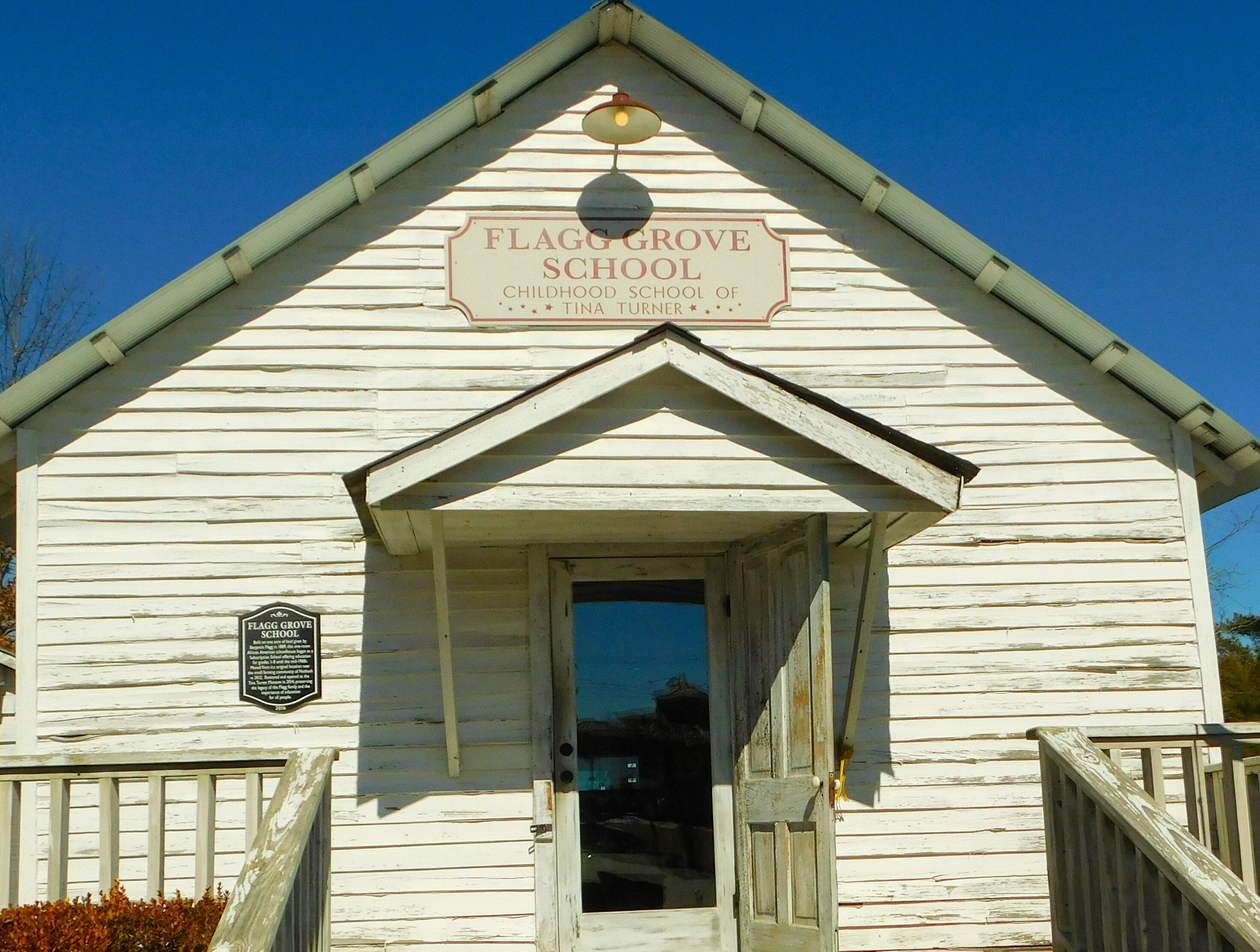 Flagg Grove School is the school that Anna May Bullock, aka Tina Turner, went to from the 1st through 8th grades during the 1940s. After completing the 8th grade at Flagg Grove School, Tina attended Carver High school here in Brownsville for a couple of years. However, after her grandmother died, she moved to St. Louis to live with her mother, where she finished her education. This is where she met Ike Turner.