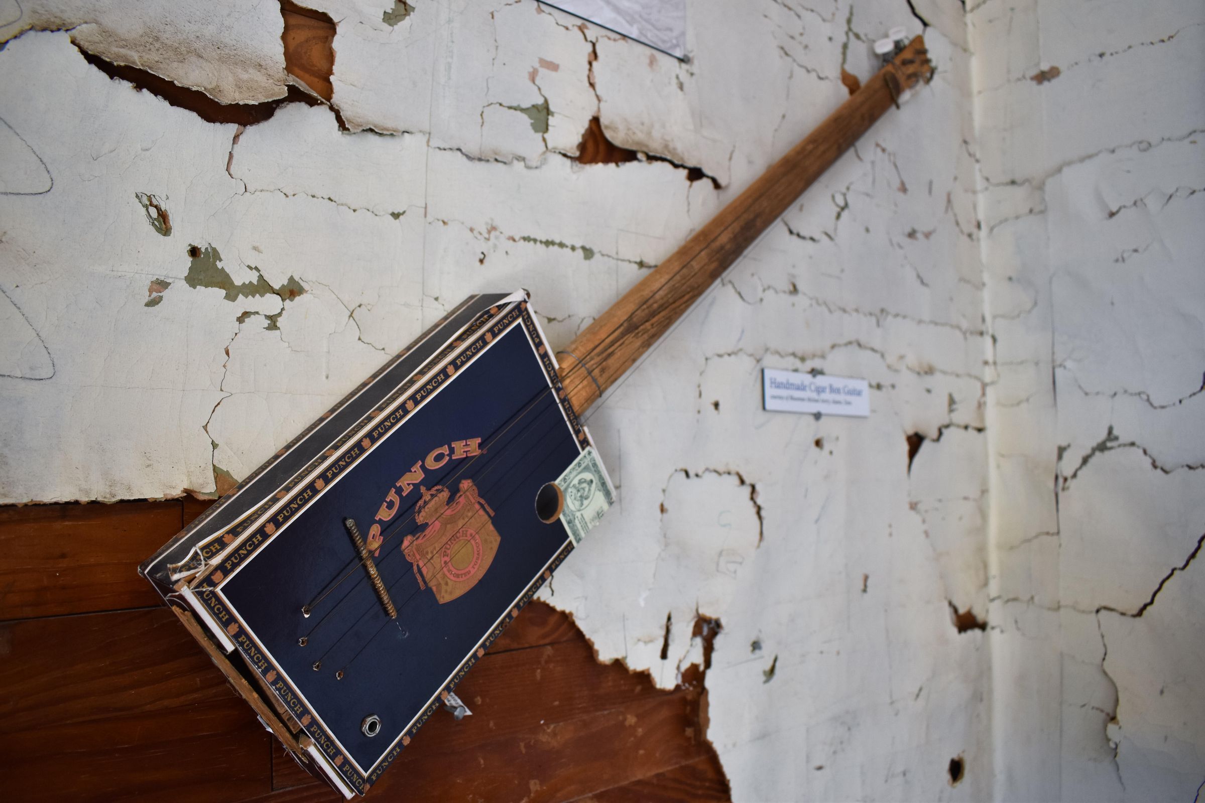 This four-string handmade cigar box guitar was crafted by Blues musician Michael Avery from Alamo, Tennessee. This cigar box seen here would have been similar to the one mad by Sleepy John when he was 12 years old.Location