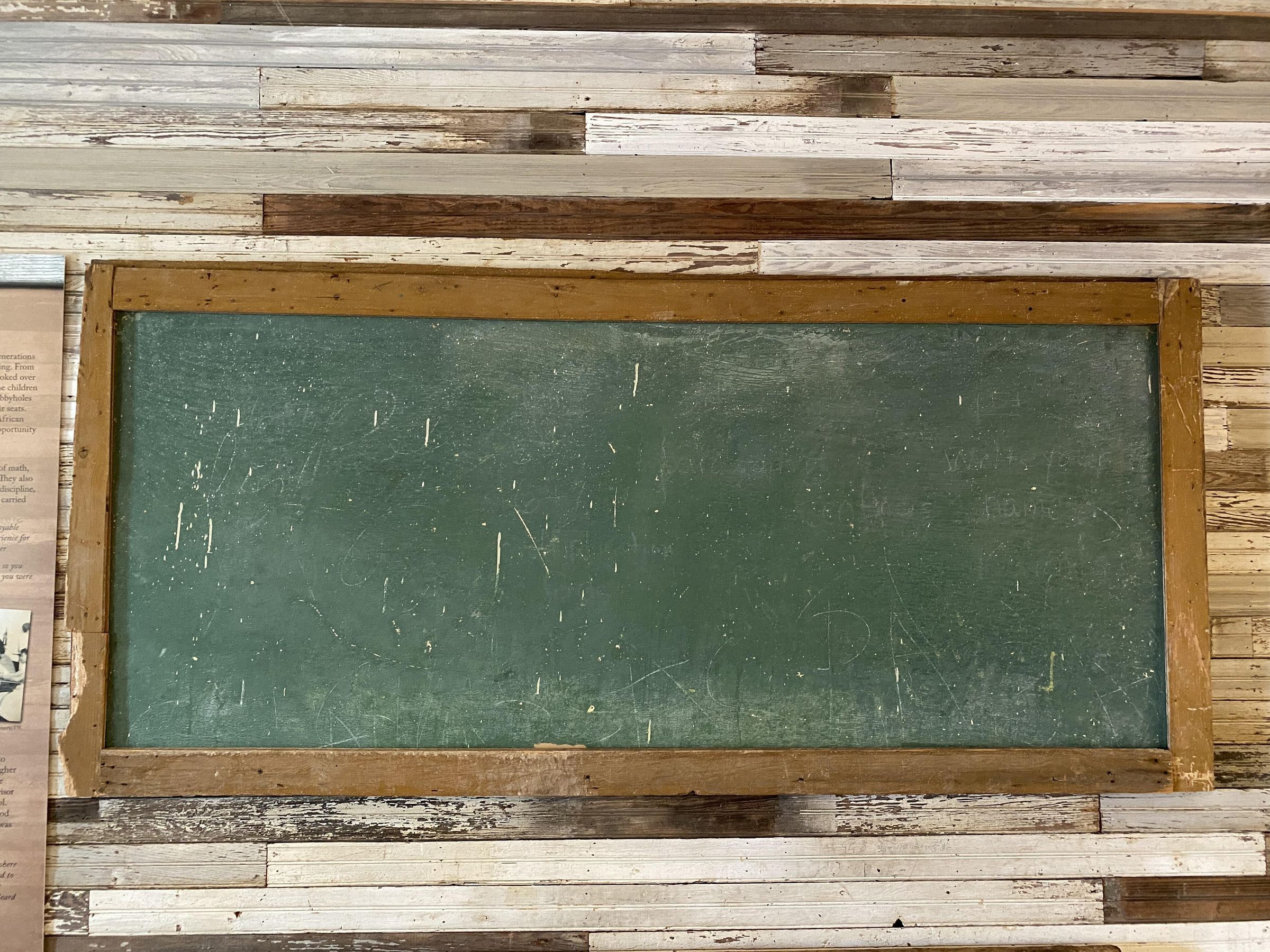 This is an antique slate chalkboard originally used in Flagg Grove School