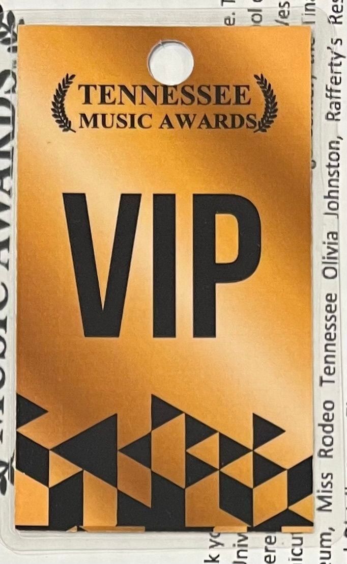 This is a VIP pass for the 2019 Tennessee Music Awards held at the University of Memphis Lambuth Campus in Jackson, Tennessee. Tina Turner received the Lifetime Achievement Award for her accomplishments in music.