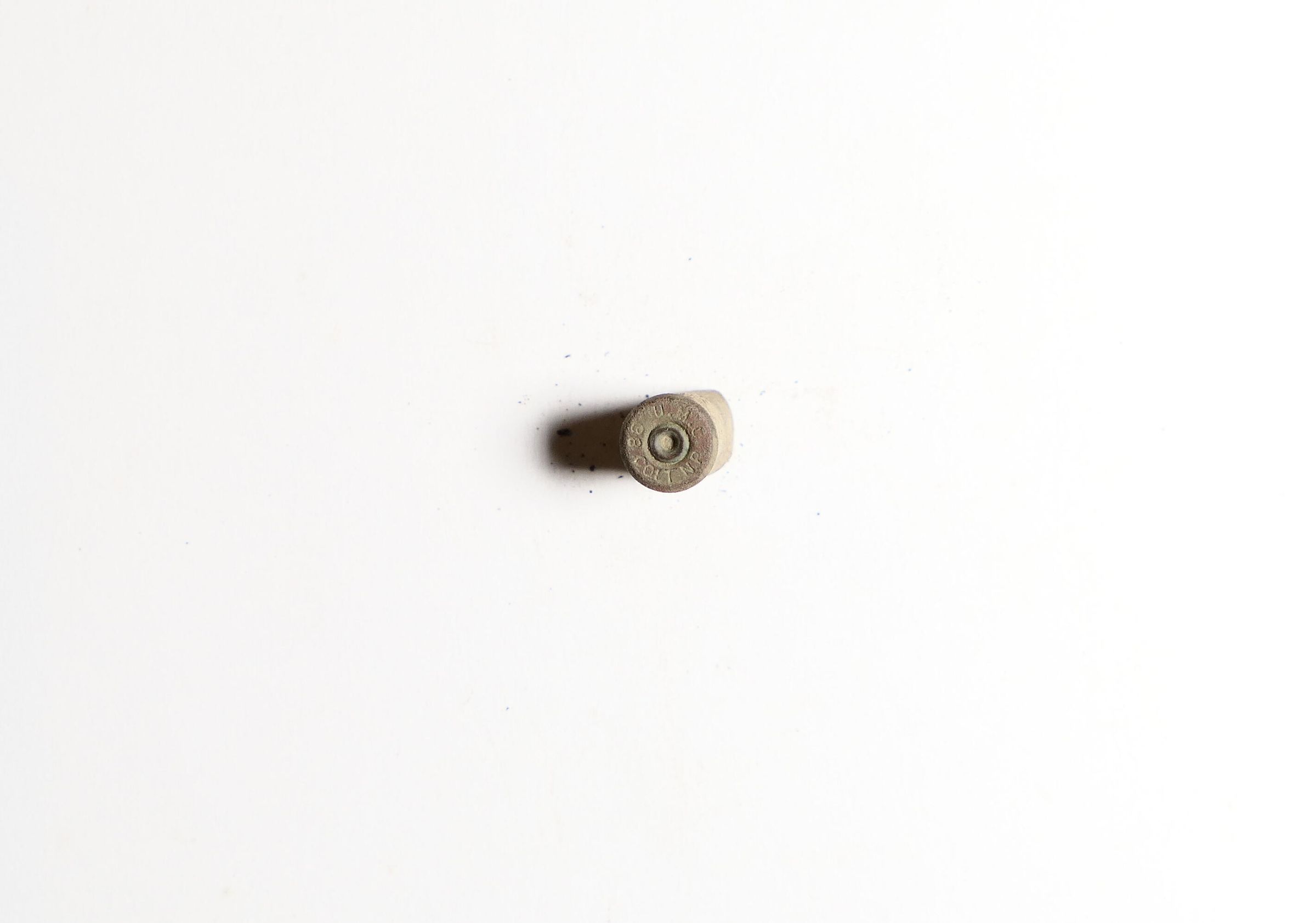 One .38 Colt New Police, a flat-nosed bullet version of the .38 S&W, a revolver cartridge.Context