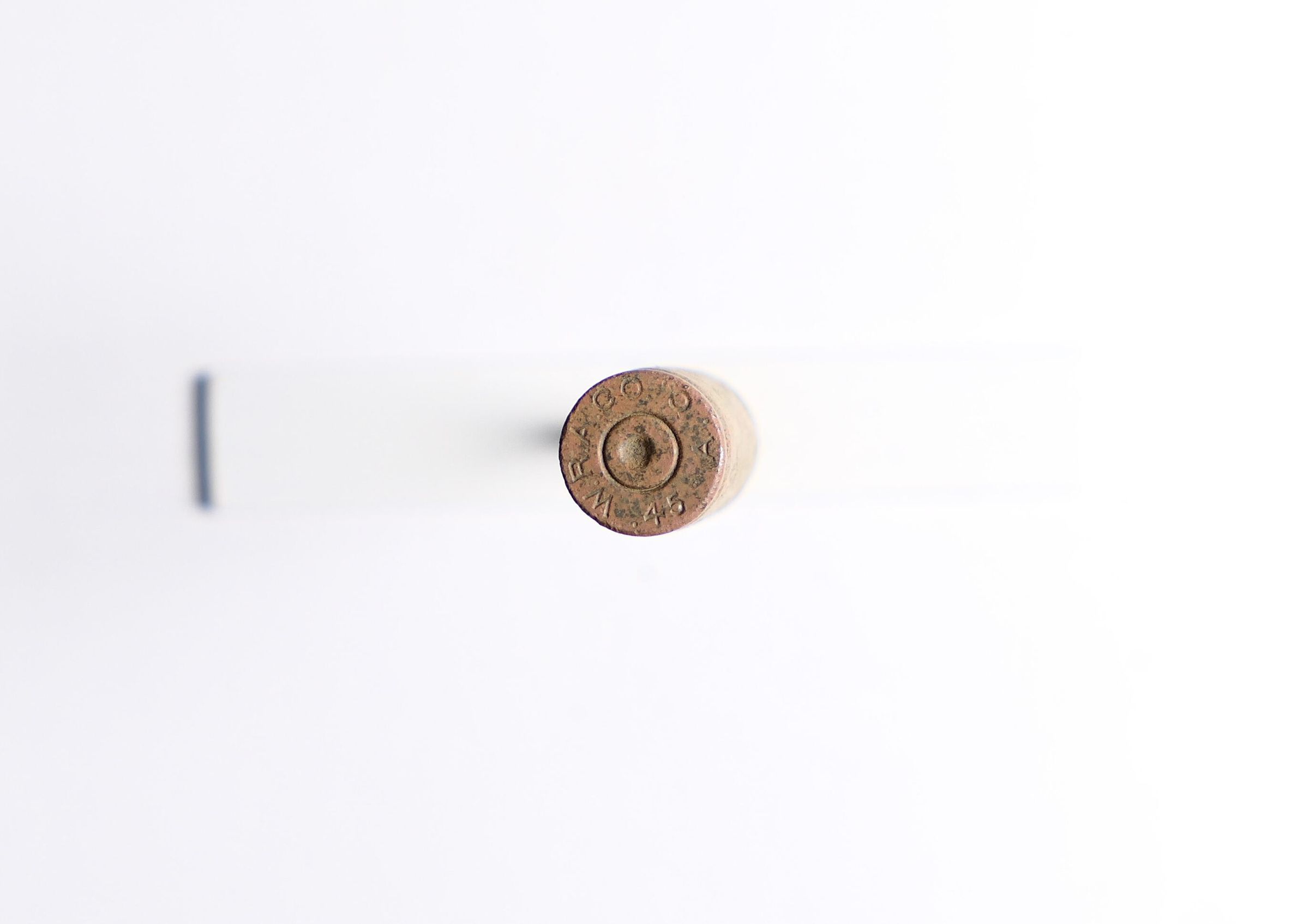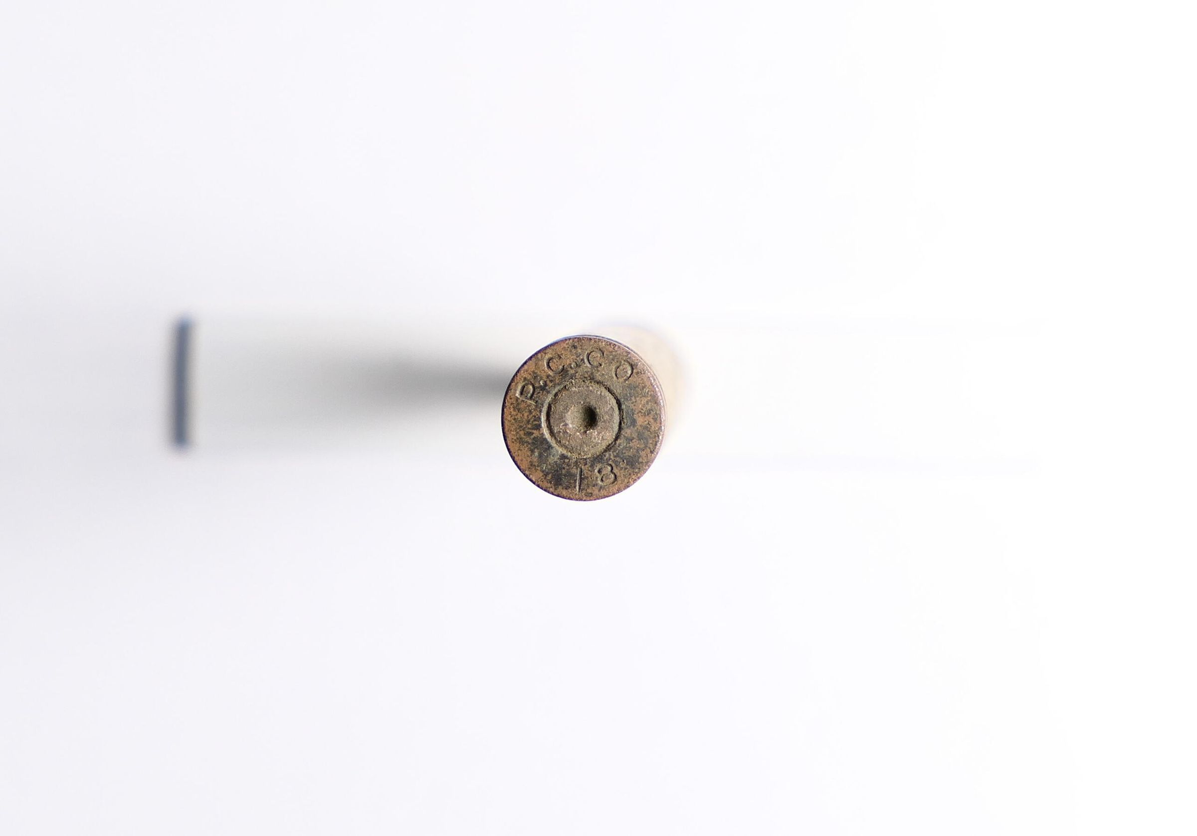 One (1) .30-06 Winchester casing with a pencil positioned inside, the rim of the case crimped to hold it in place.