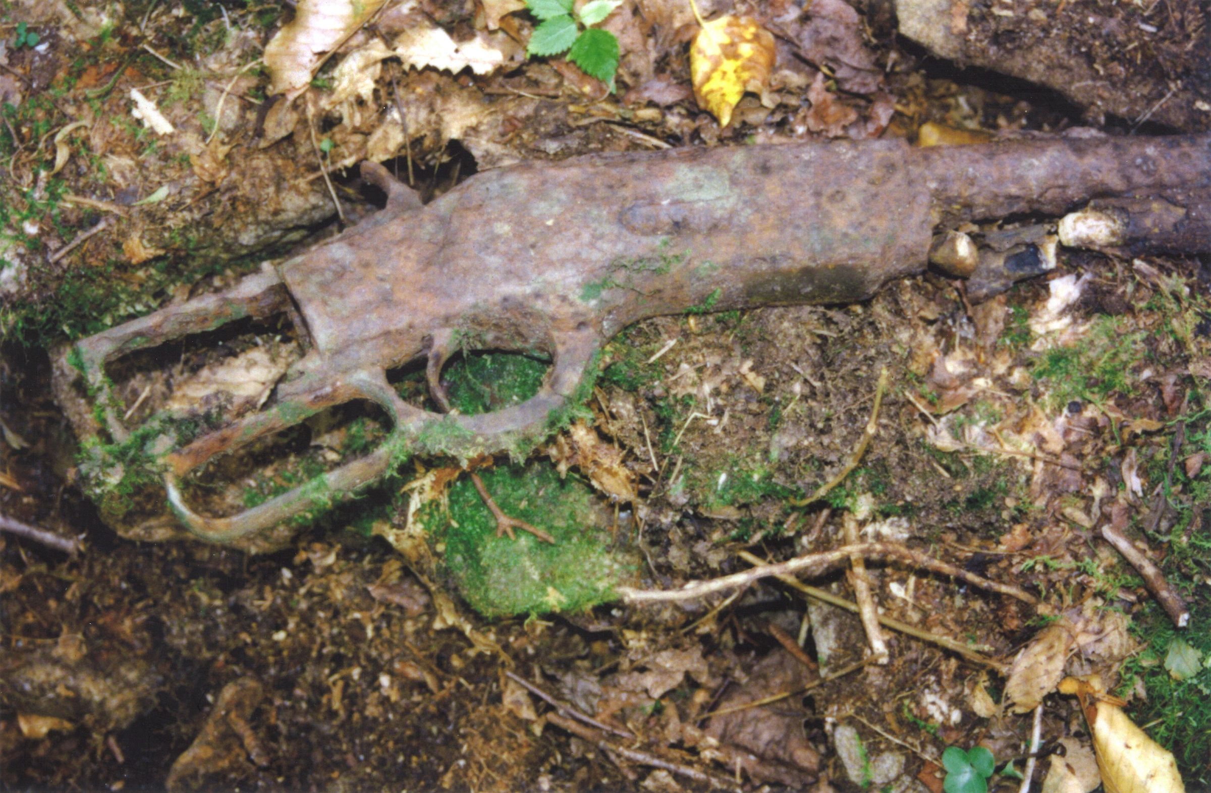 Very few intact firearms have been recovered from the Blair Mountain battlefield. This rifle, found buried on battlefield in an area known to have been occupied by the "redneck army", was likely used in combat and hidden when the US Army arrived. Discovered February 8, 2002 by Elmer Stone.