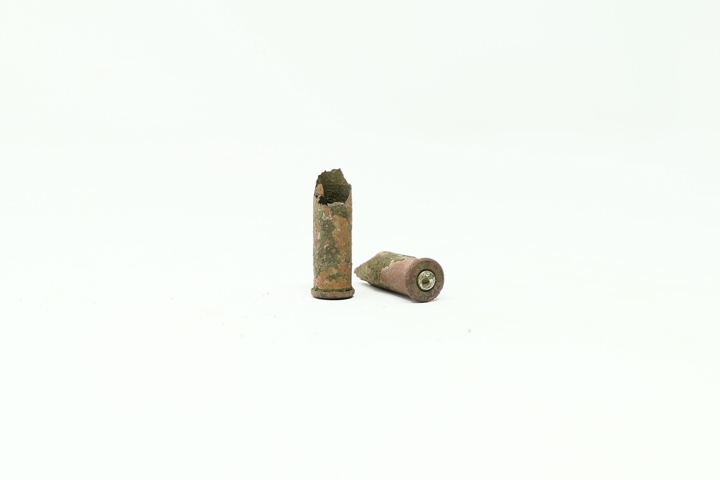 This collection includes four (4) bullets, disfigured from impact, one (1) .30-06 cartridge, one (1) .250 Savage cartridge, ten (10) assorted casings, and one (1) 16 gauge shotgun brass head.Context