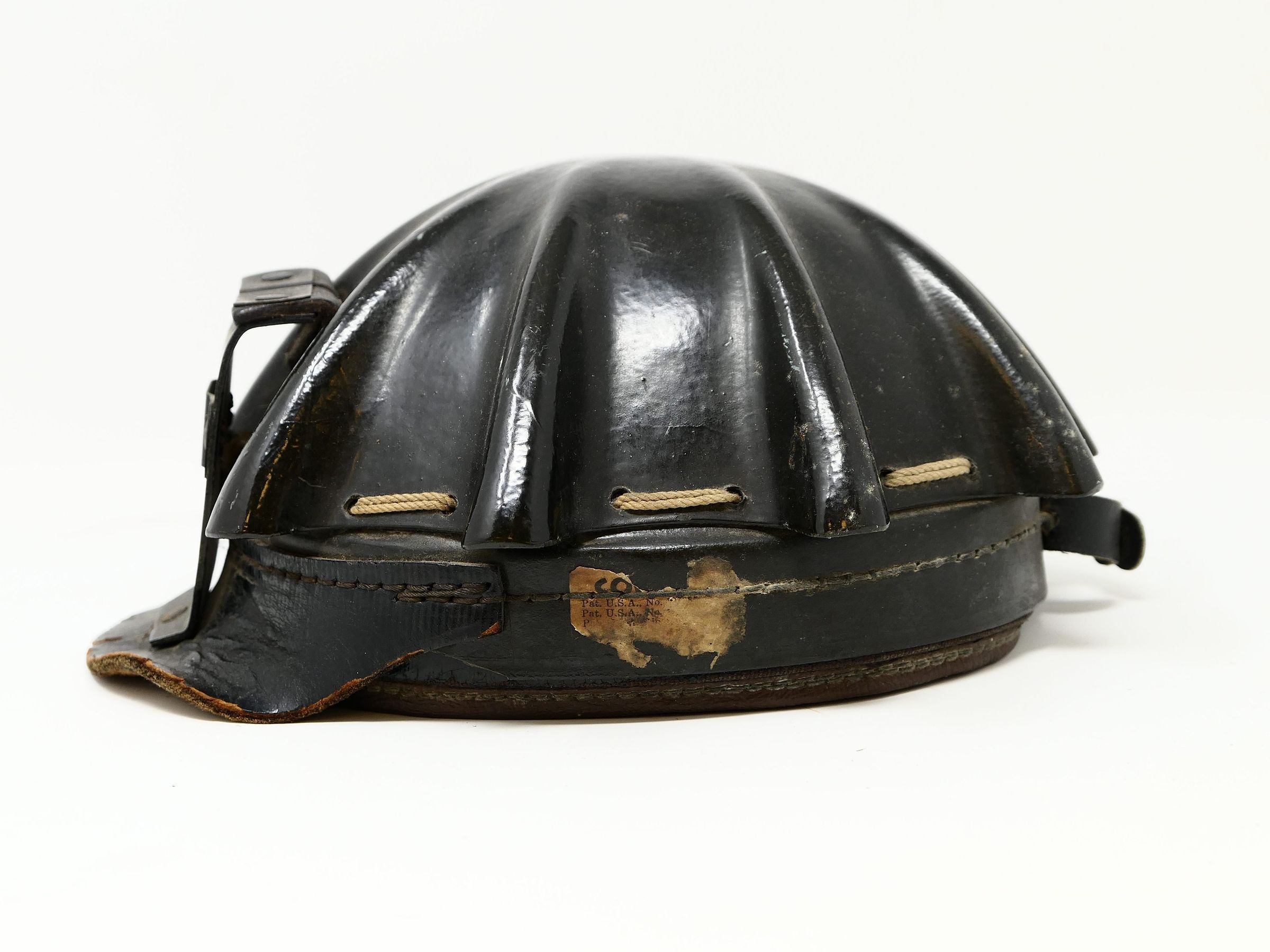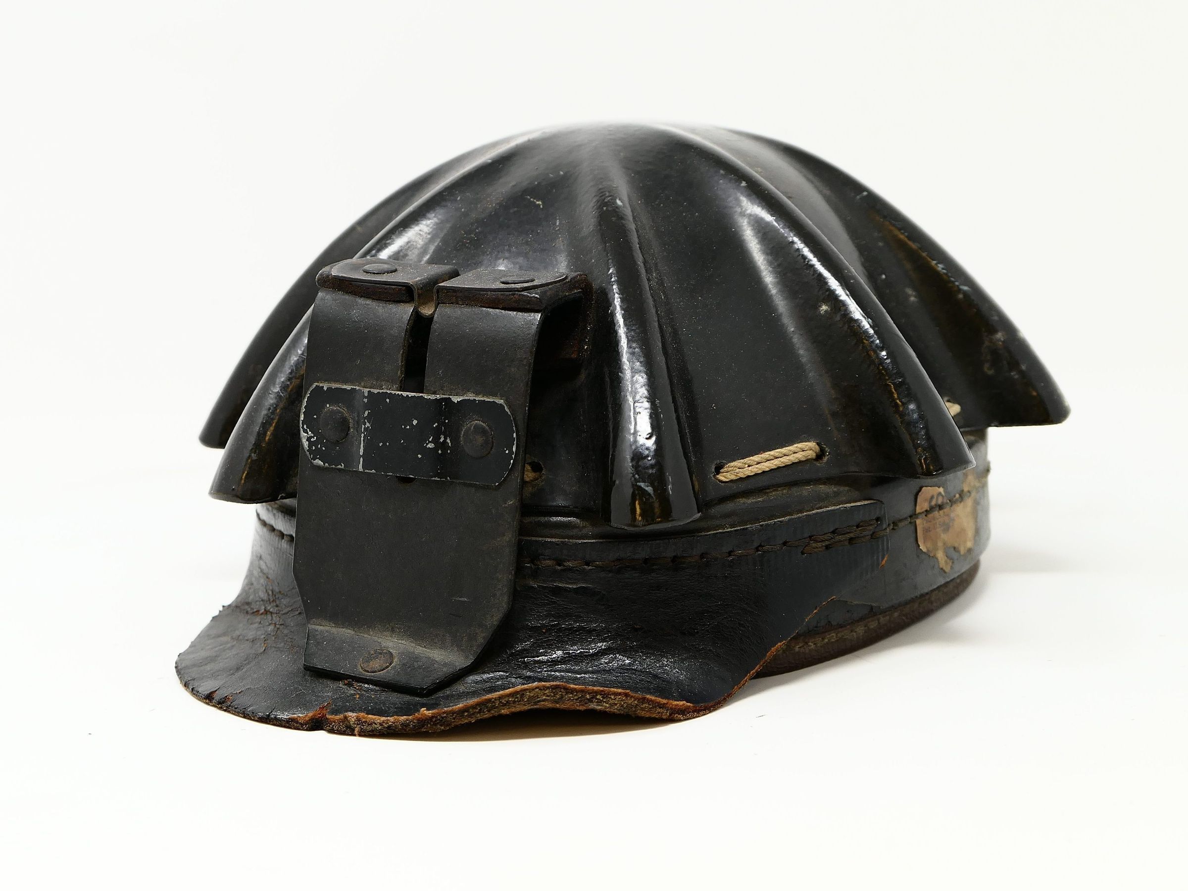First effort at head protection as standard miner's gear, replacing canvas caps. Known as Flexo Band Cool Cap, early models such as this one came with boiled leather top, later models were available with Bakelite tops.Collection