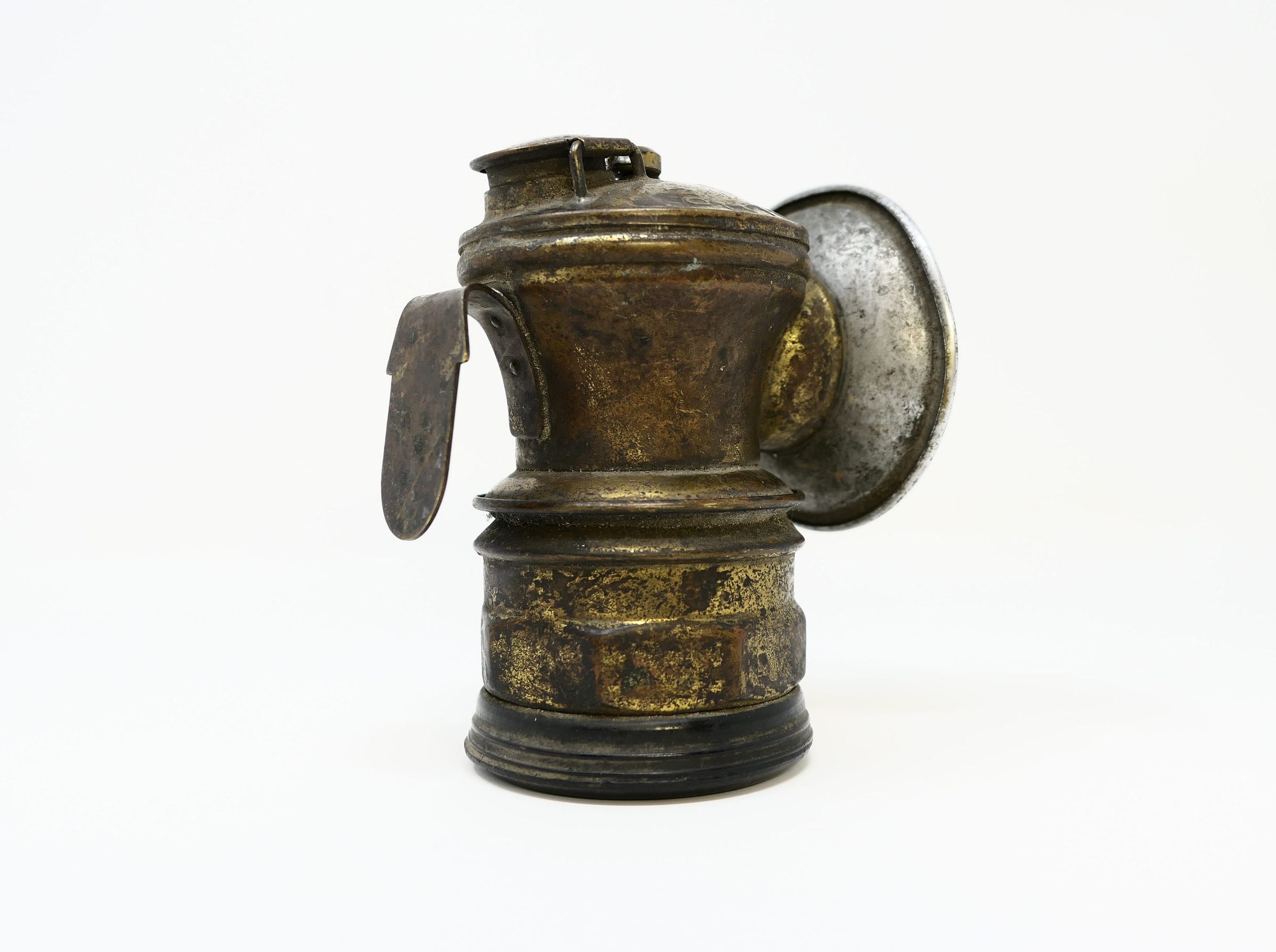 Used for illumination in underground mines. Developed after oil wick lamps to include reflector dish, still an open flame.