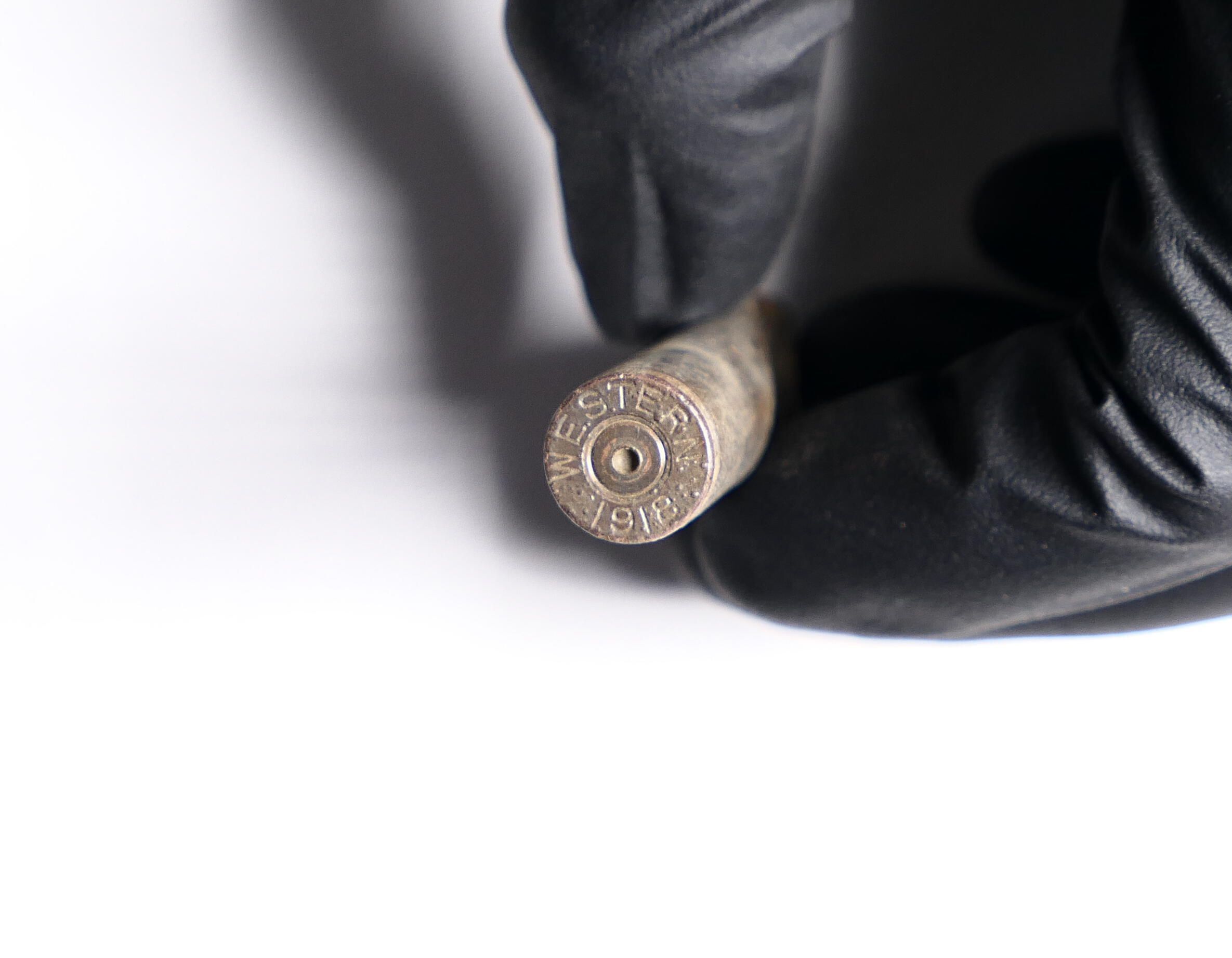 One (1) .30-06 Winchester casing with a pencil positioned inside, the rim of the case crimped to hold it in place.