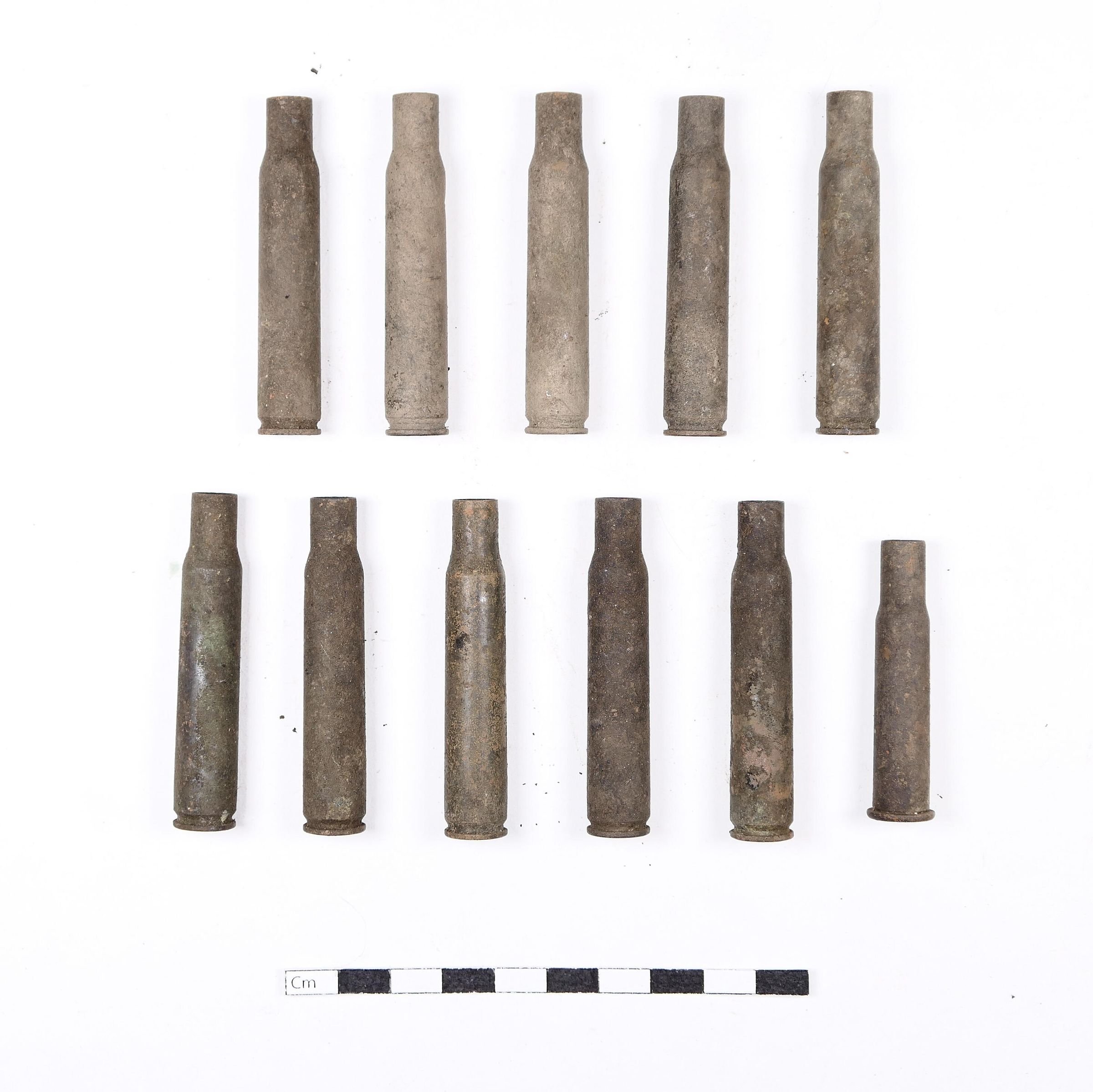 Part of a large southern flank at Crooked Creek Gap, CCS1 and this site, CCS2, are located along a crest at the highest point in the Crooked Creek Area (610 meters above sea level, valley bottom 200m). The total number of items found is 162, overwhelmingly .30-06 casings. One .45-70 bullet found (not included here) suggests, by it's range, that the miners would have been within 1000m of this position.