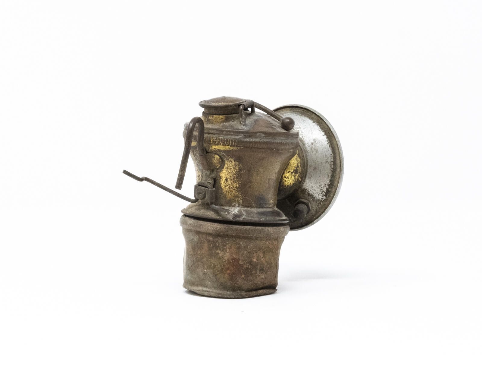 Used for illumination in underground mines. Developed after oil wick lamps to include reflector dish, still an open flame.