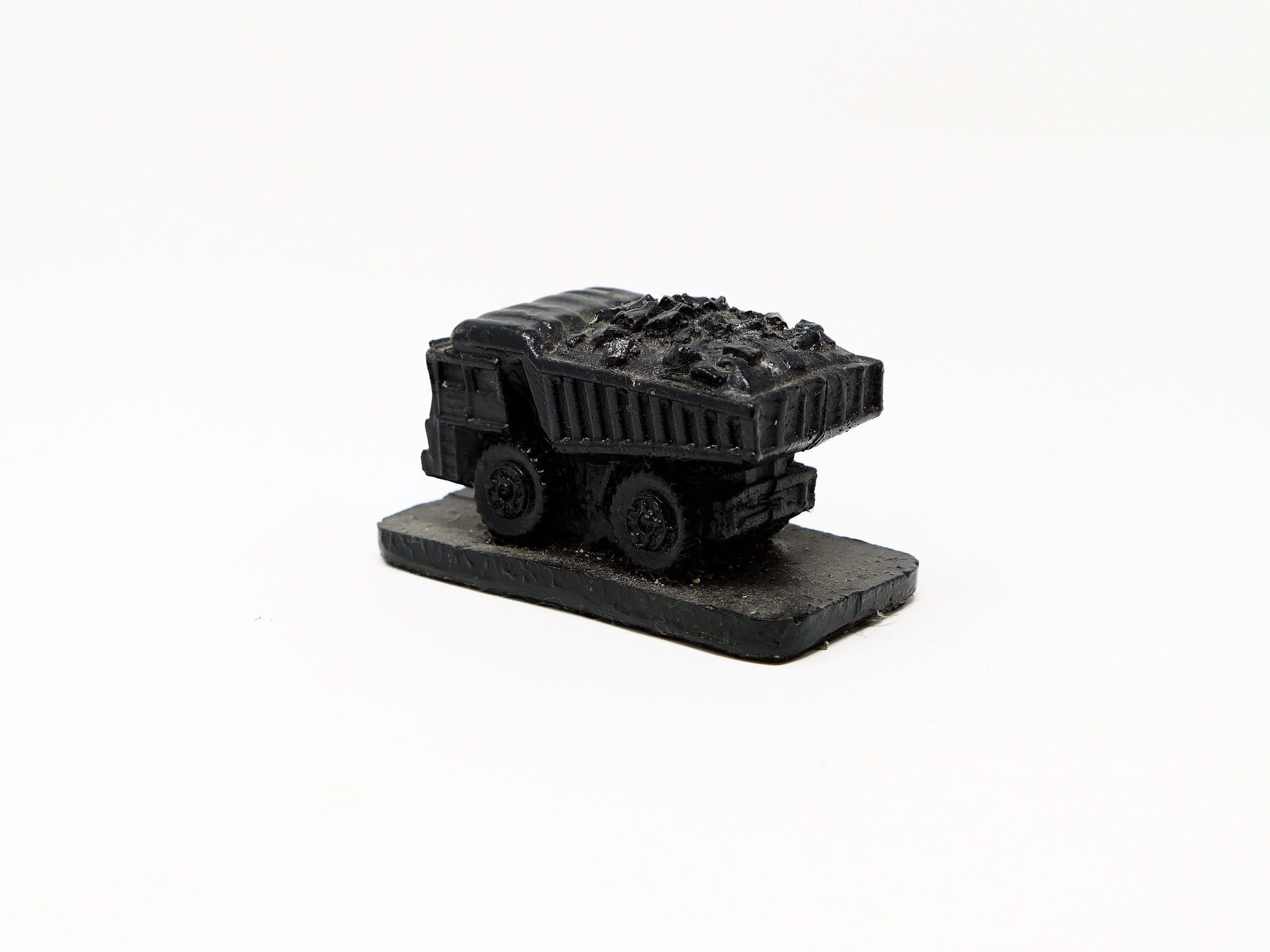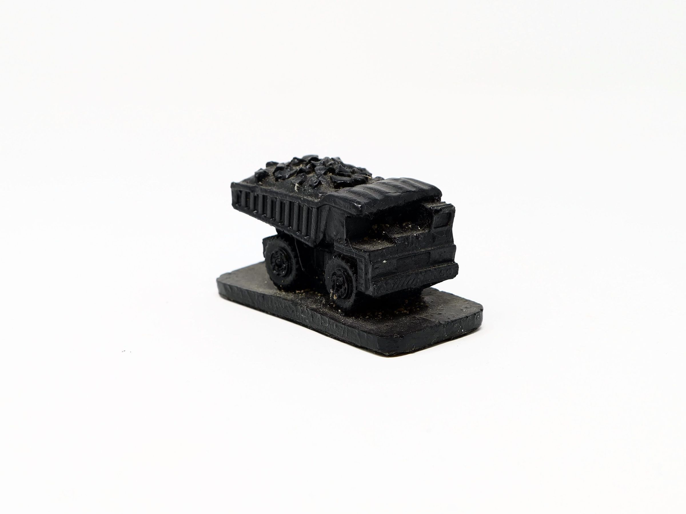 Small sculpture of a truck with a load of coal in the dump box, similar to the large Caterpillar 797F, which is commonly used at open pit strip mining sites.Type of Sculpture