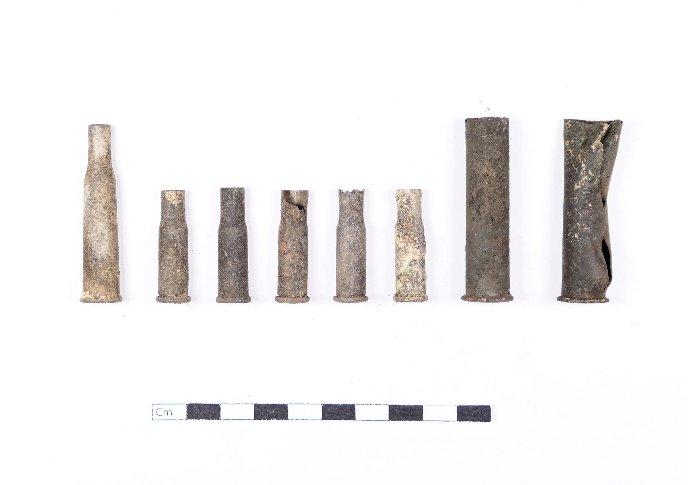 Eight (8) casings, representing three calibers. This site, CCN2, was later collapsed into one site with CCN1. Analysis of the total collection indicates a range of calibers that suggests a long-range fire position was established here as a defensive site.Context