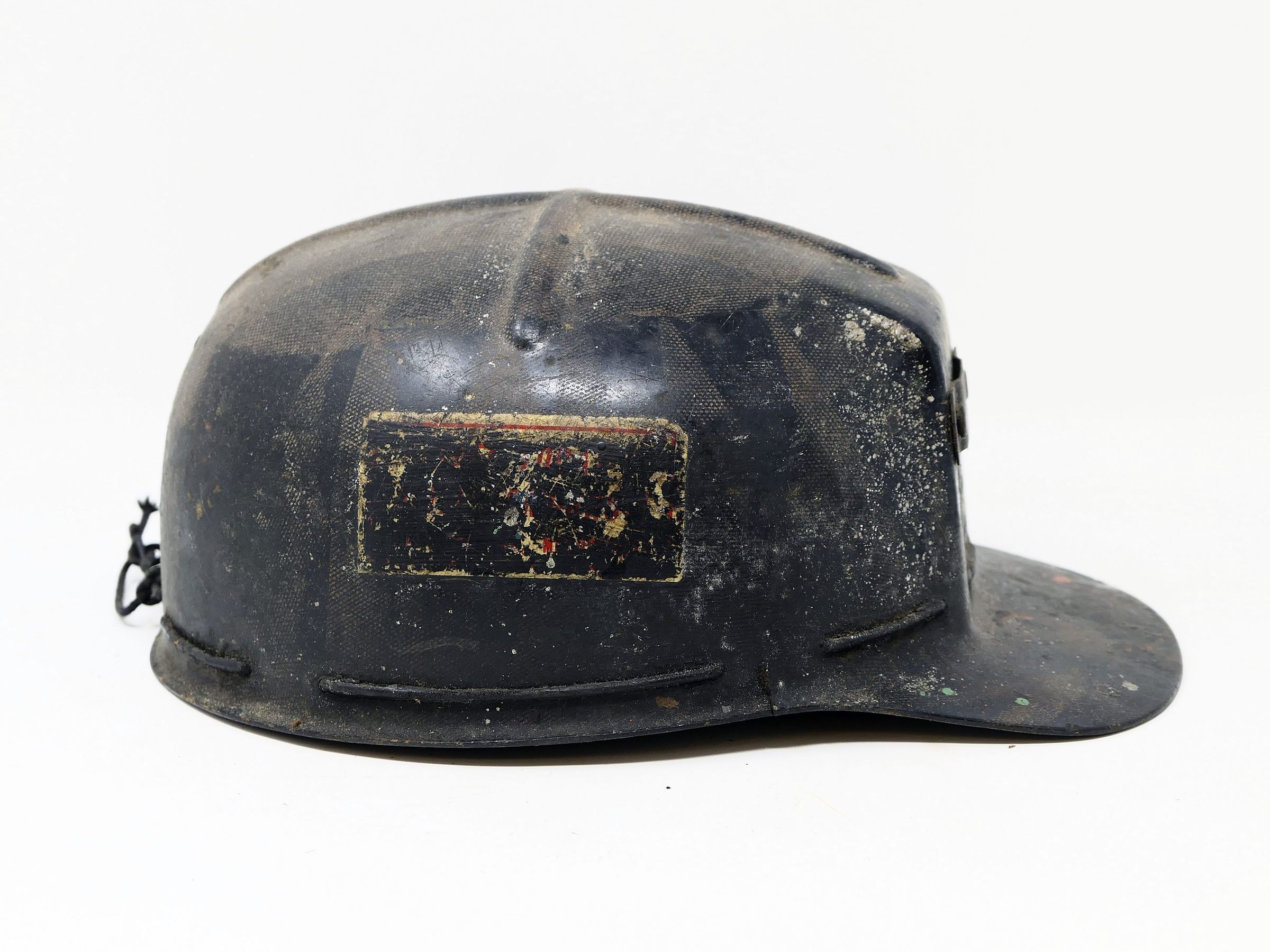 Modern coal miner's helmet with interior lace-in liner. Much of the surface on this helmet is worn down.Use