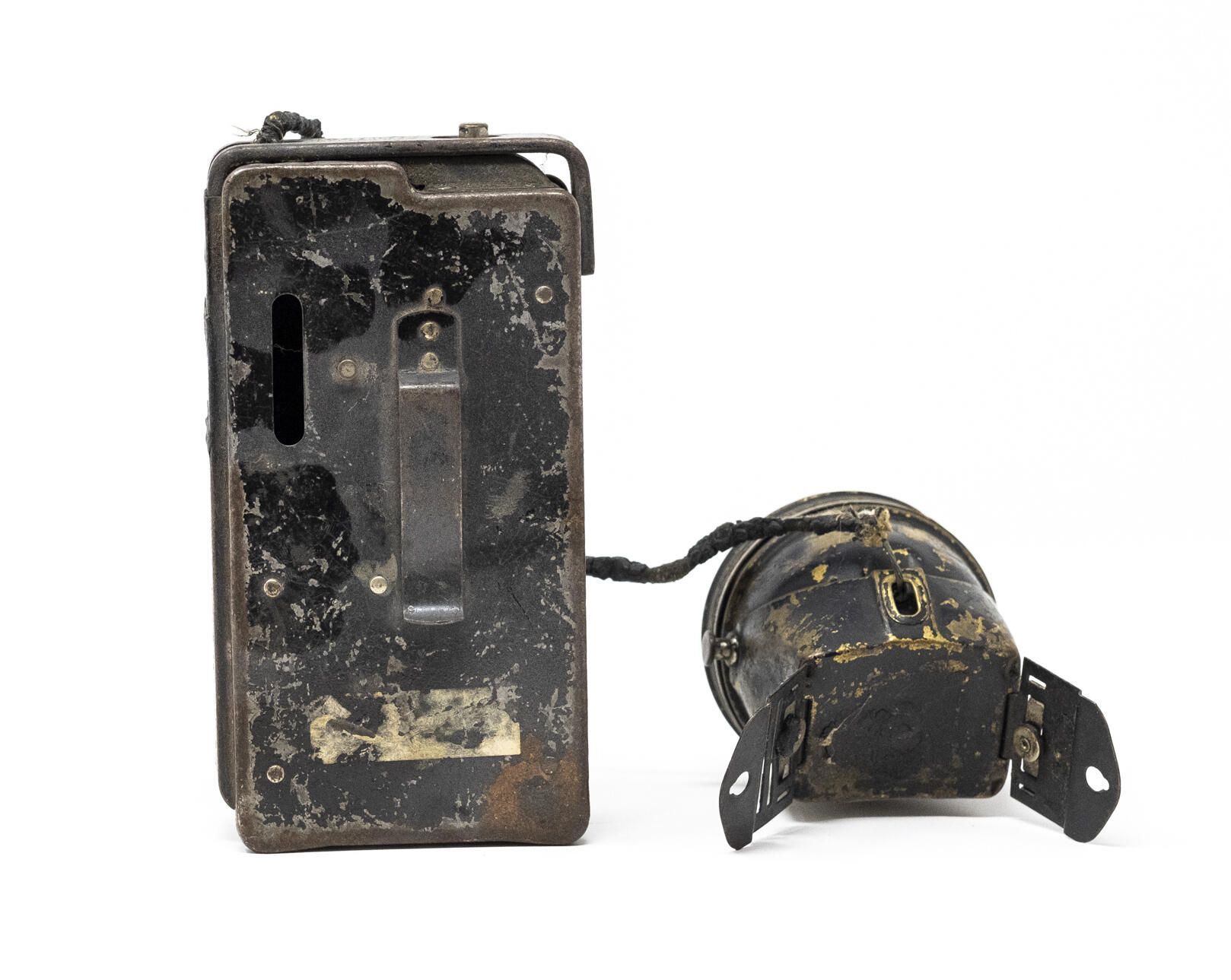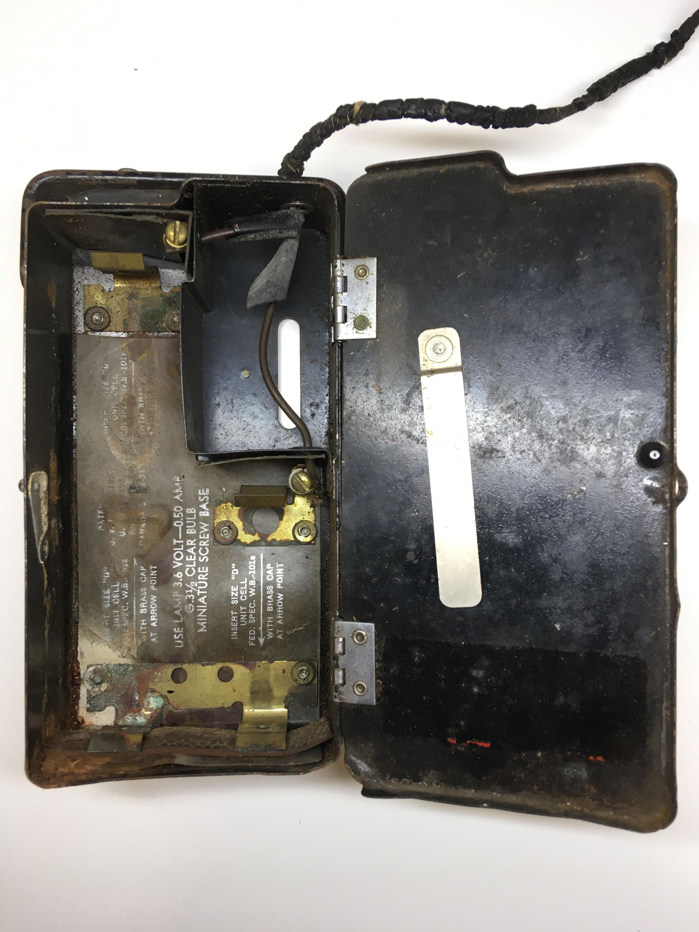 I just wanted to give you a little more information on this artifact. This light could be reconfigured into a flashlight by sliding the bail up to form a carrying handle and attaching the light head to the front of the bail. The excess cord could be tucked into the compartment to keep it from getting in the way. I used to have this same lamp (it's long since lost) when I was in high school (I graduated in 1985) and used it as a flashlight since the strap on the lamphead was shot. I got it at a flea market in the Somerset, PA area sometime around 1980.