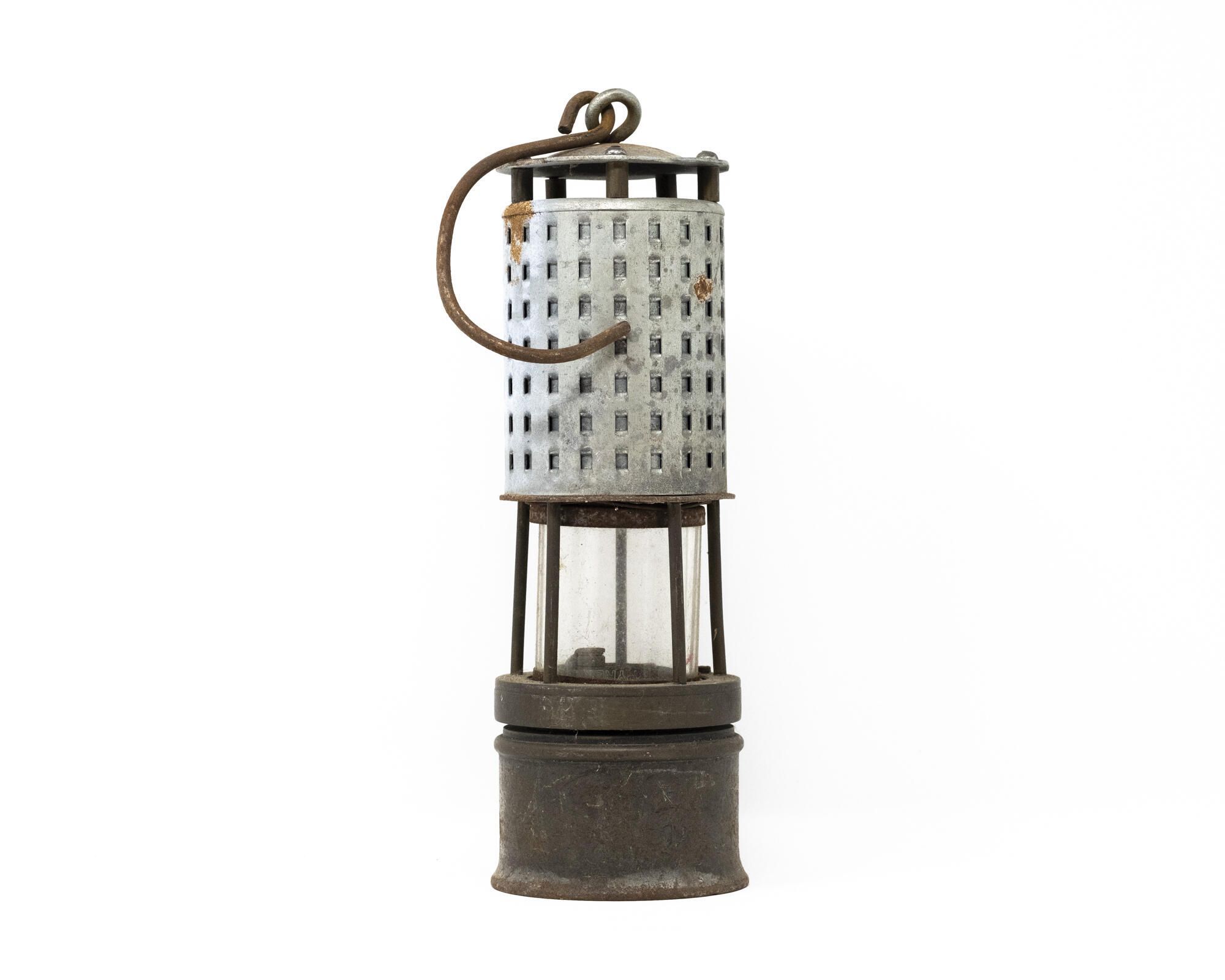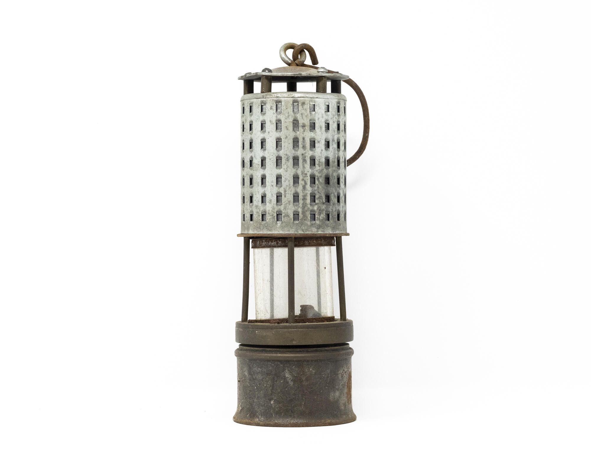 Illumination in underground coal mine, sometimes called a "possum lamp". The enclosure allows for protection of the flame from igniting gases and coal dust. Flames burned higher and with a blue tint when methane was present, while the flame would diminish in the presence of carbon dioxide.Context