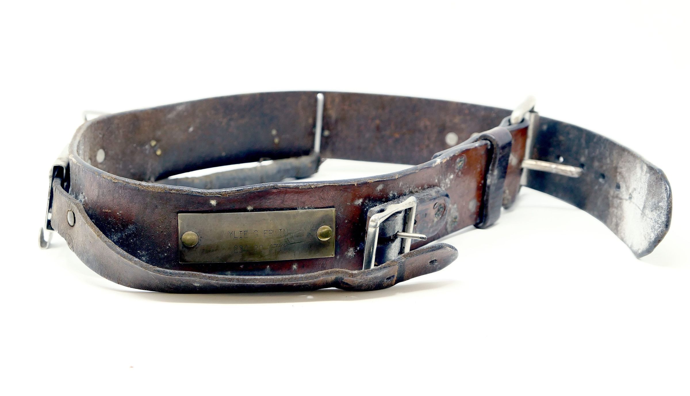 Leather mining belt with various tool-specific attachments. Belonged to Wylie Erwin.Collection