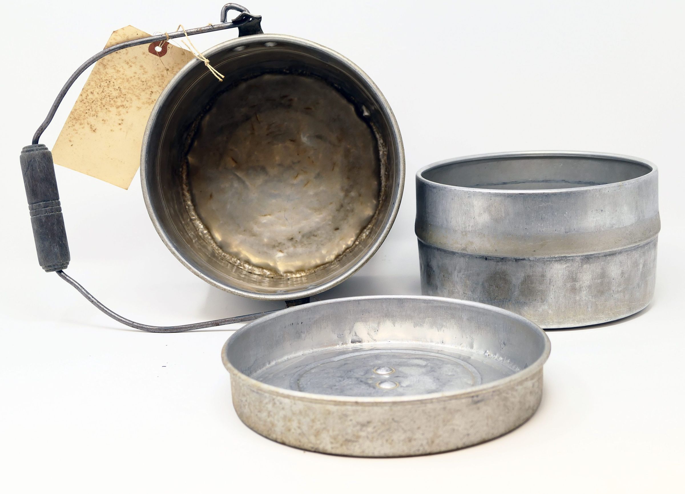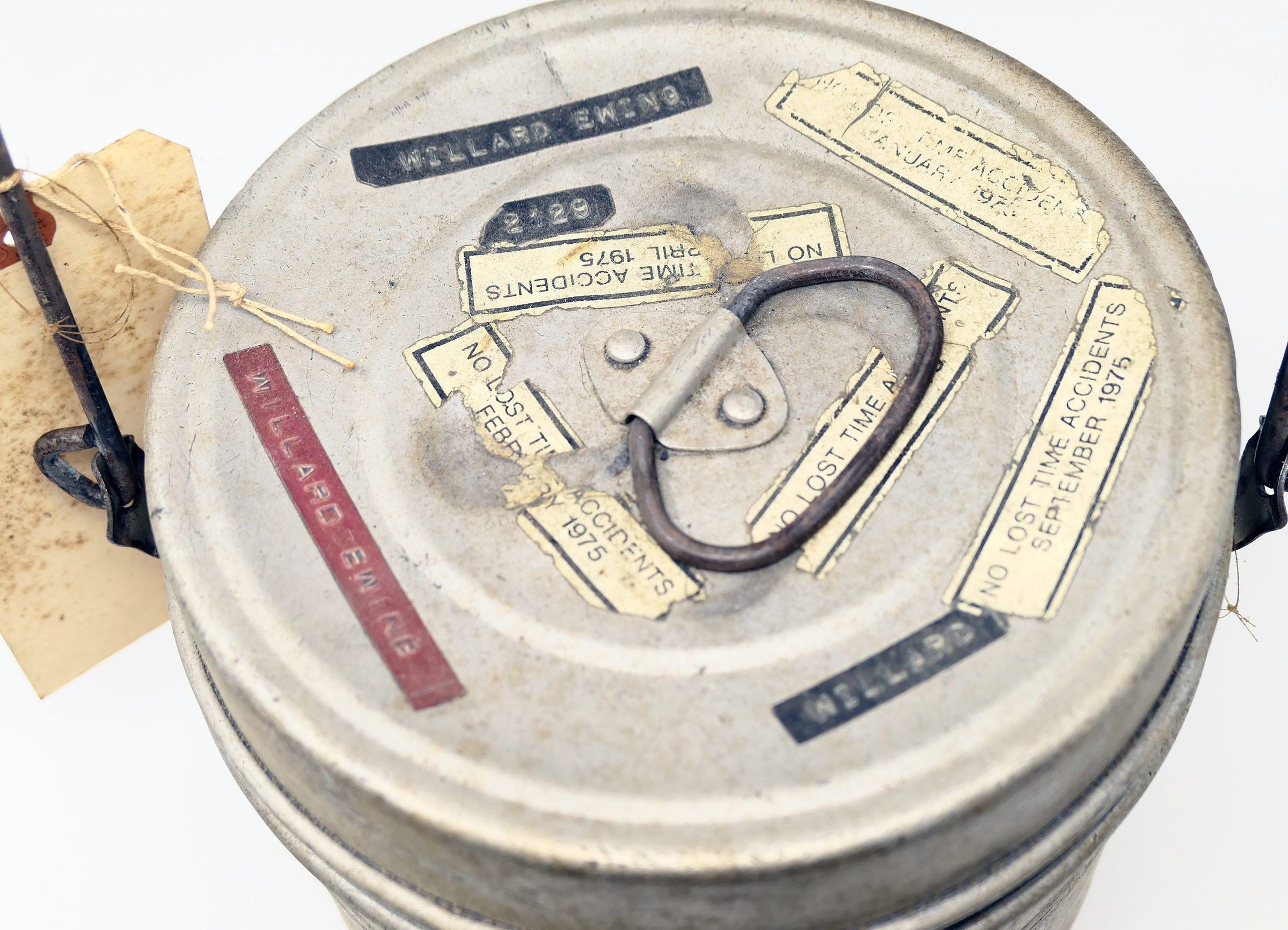 Used for transporting meals into underground coal mines, compartments keep various food elements separate.Context