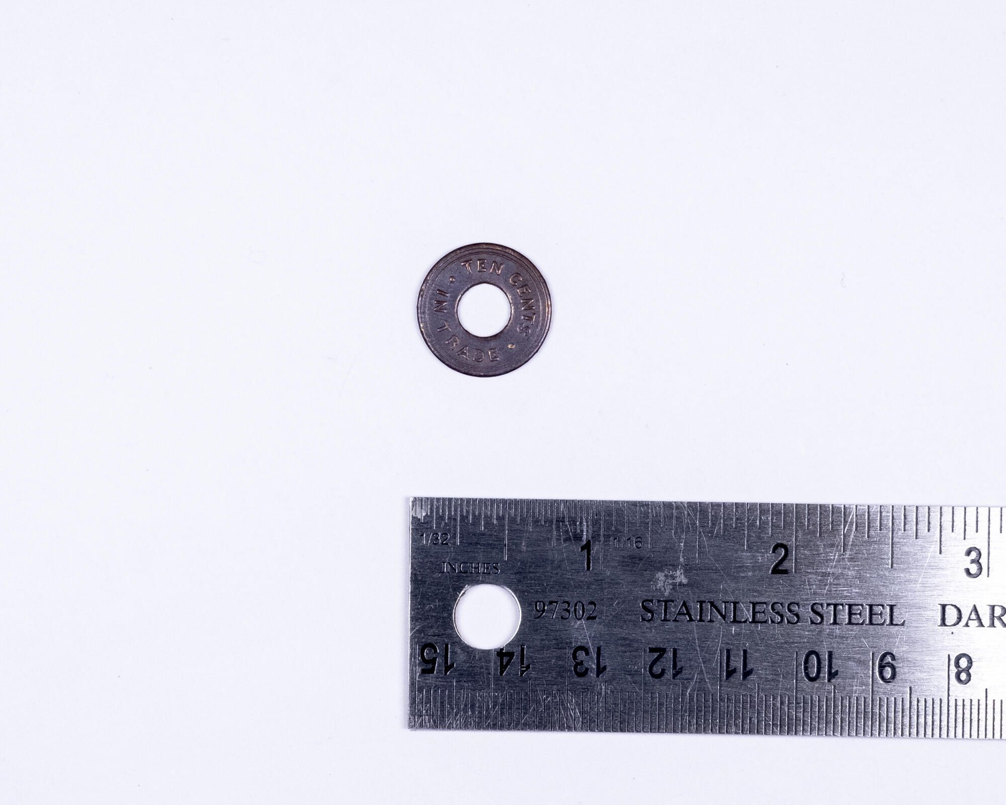 unidentified token, 10 cents large circular hole cut-out