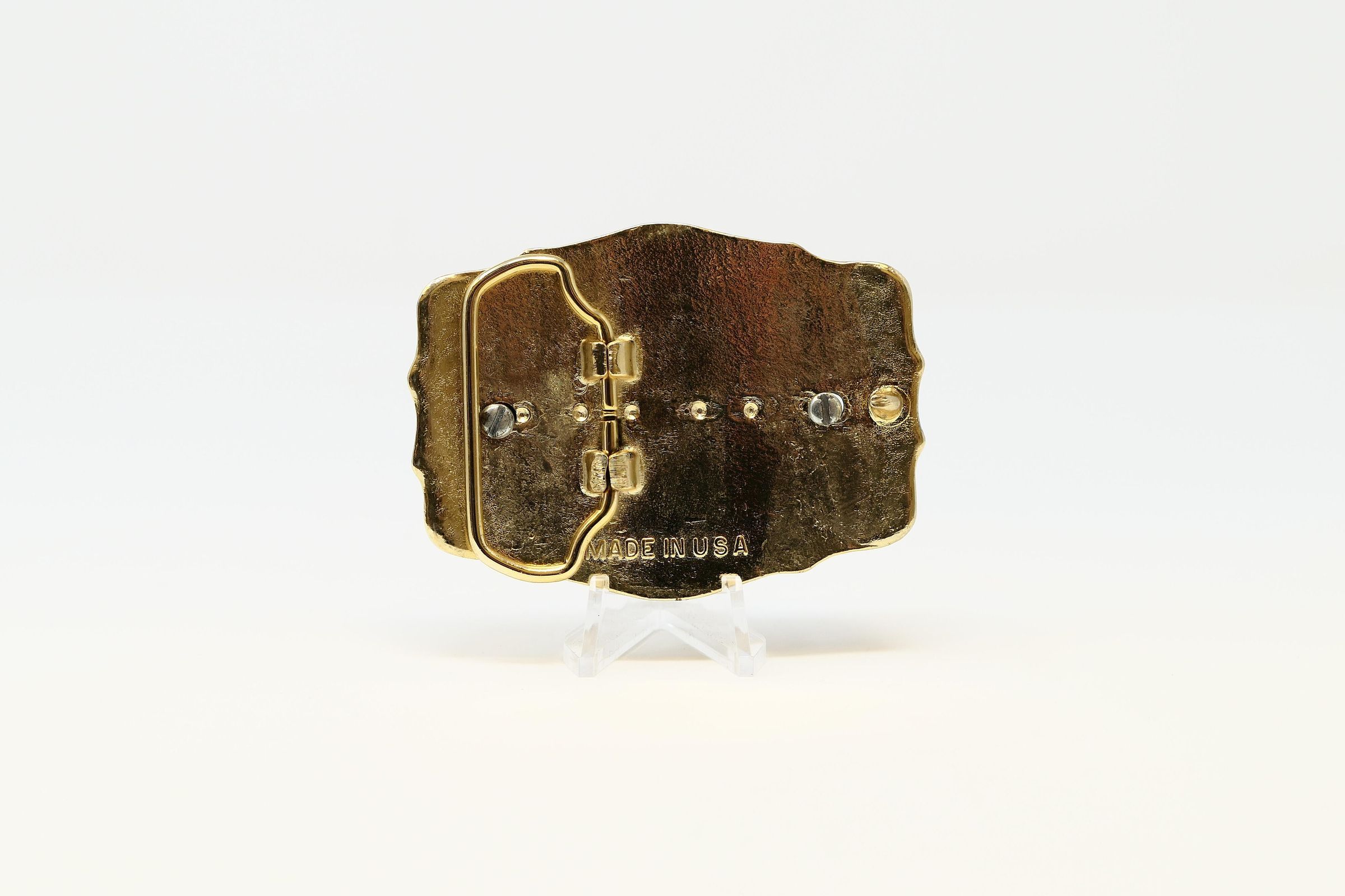 Brass belt buckle with resin insert bearing cloisonné United Mine Workers union logo in the center.Collection
