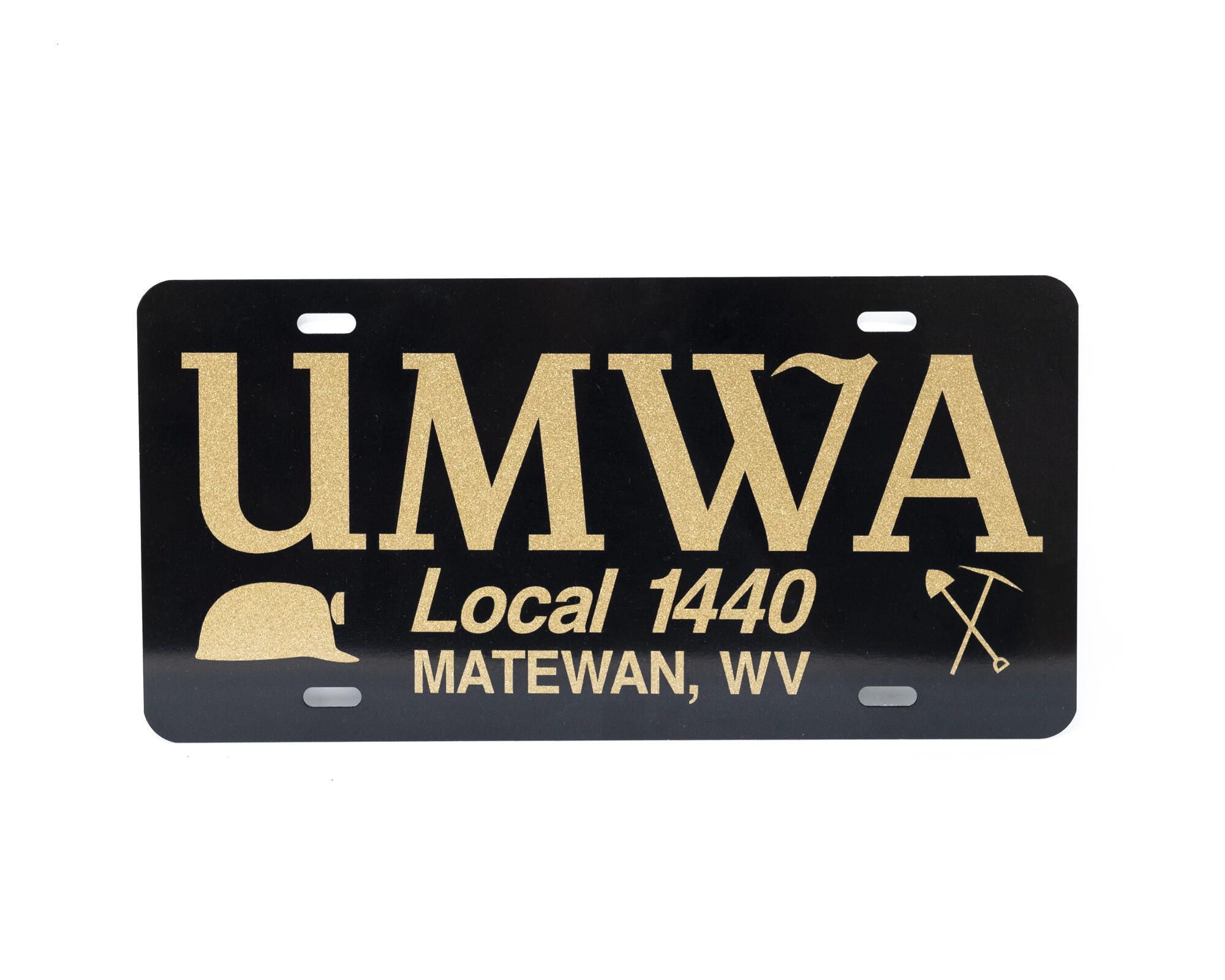 Screenprinted aluminum license plate for United Mine Workers of America's Local 1440.Context