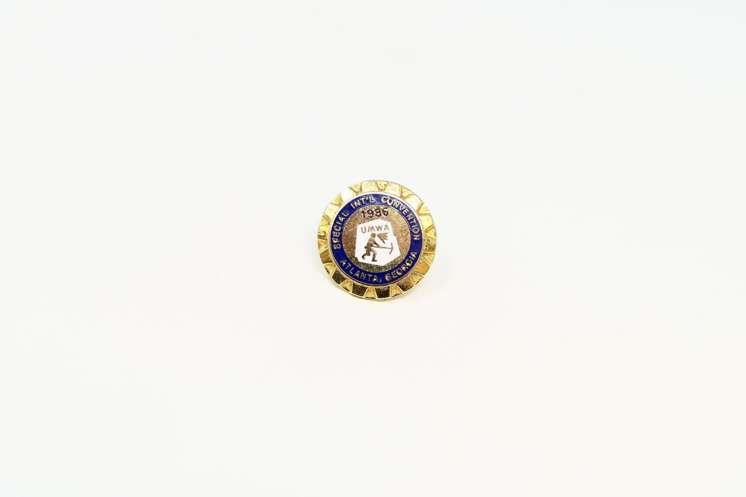 Lapel pin commemorating the 1986 Special International Convention of the United Mine Workers, held in Atlanta, Georgia.Collection